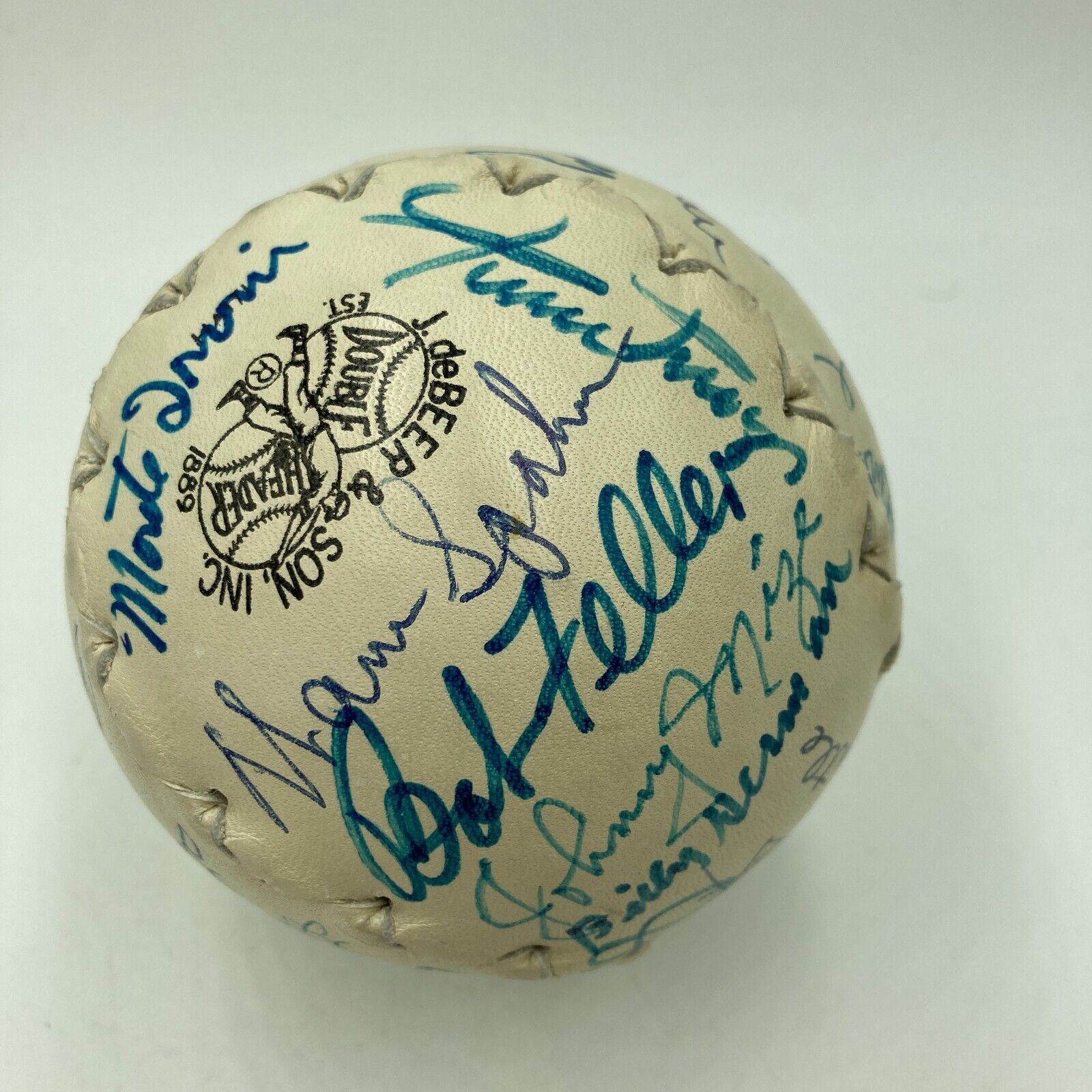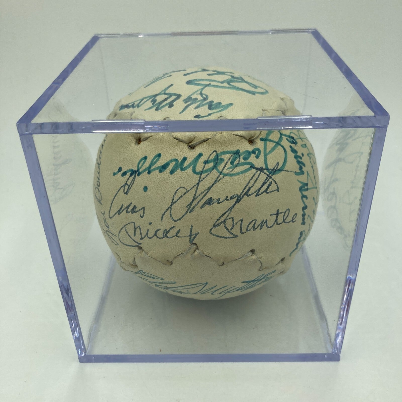 Unique Official Clincher softball features twenty-four (24) Baseball Hall of Famer signatures including Mickey Mantle; Joe DiMaggio; Willie Mays; Nolan Ryan; Carl Yastrzemski; Eddie Mathews; Al Kaline; George Kell; Duke Snider; Lefty Gomez; Ralph Kiner; Harmon Killebrew; Luke Appling; Early Wynn; Monte Irvin; Warren Spahn; Bob Feller; Johnny Mize; Billy Herman; Enos Slaughter; Lou Boudreau; Whitey Ford; Robin Roberts; and Rick Ferrell.