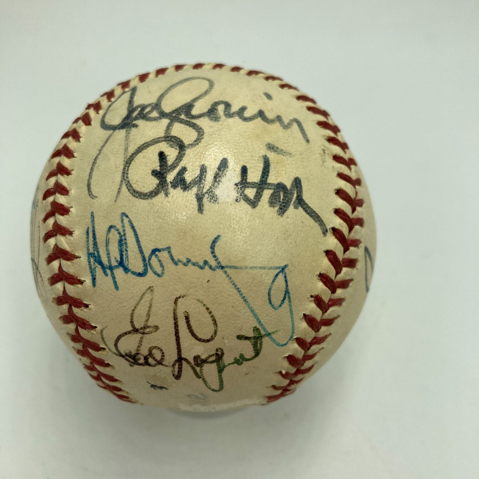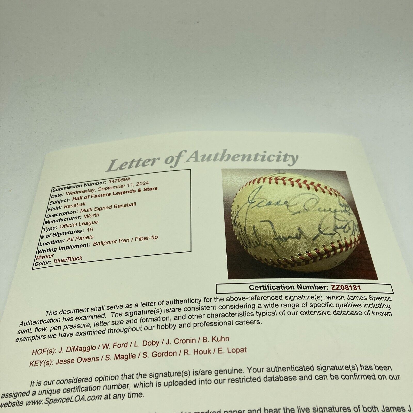 Jesse Owens, Joe DiMaggio, and others autographed baseball Worth Official League baseball has been signed by (16) incl. Owens, DiMaggio, Joe Cronin, Bowie Kuhn, Larry Doby, Whitey Ford, Earl Weaver, Sal Yvars, Ralph Houk, Al Downing, Ed Lopat, Sal Maglie, Sid Gordon, and Ron Blomberg.