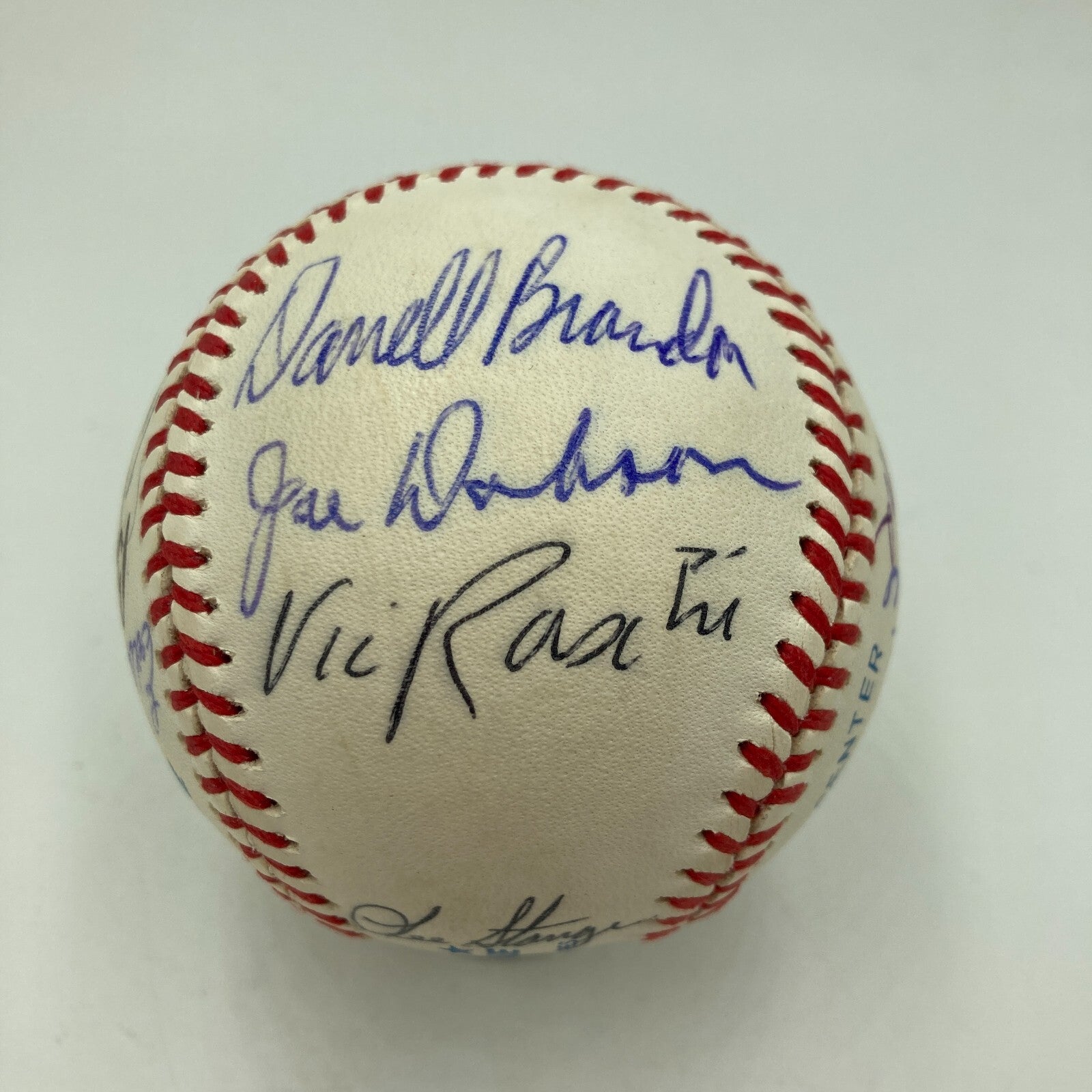 Signatures include both Ted Williams and Joe DiMaggio. Other signers include Frank Malzone, Vic Raschi, Boo Ferriss, Don Gutteridge, Ed Yost, and Walt Dropo. Carl Yastrzemski signature is clubhouse.