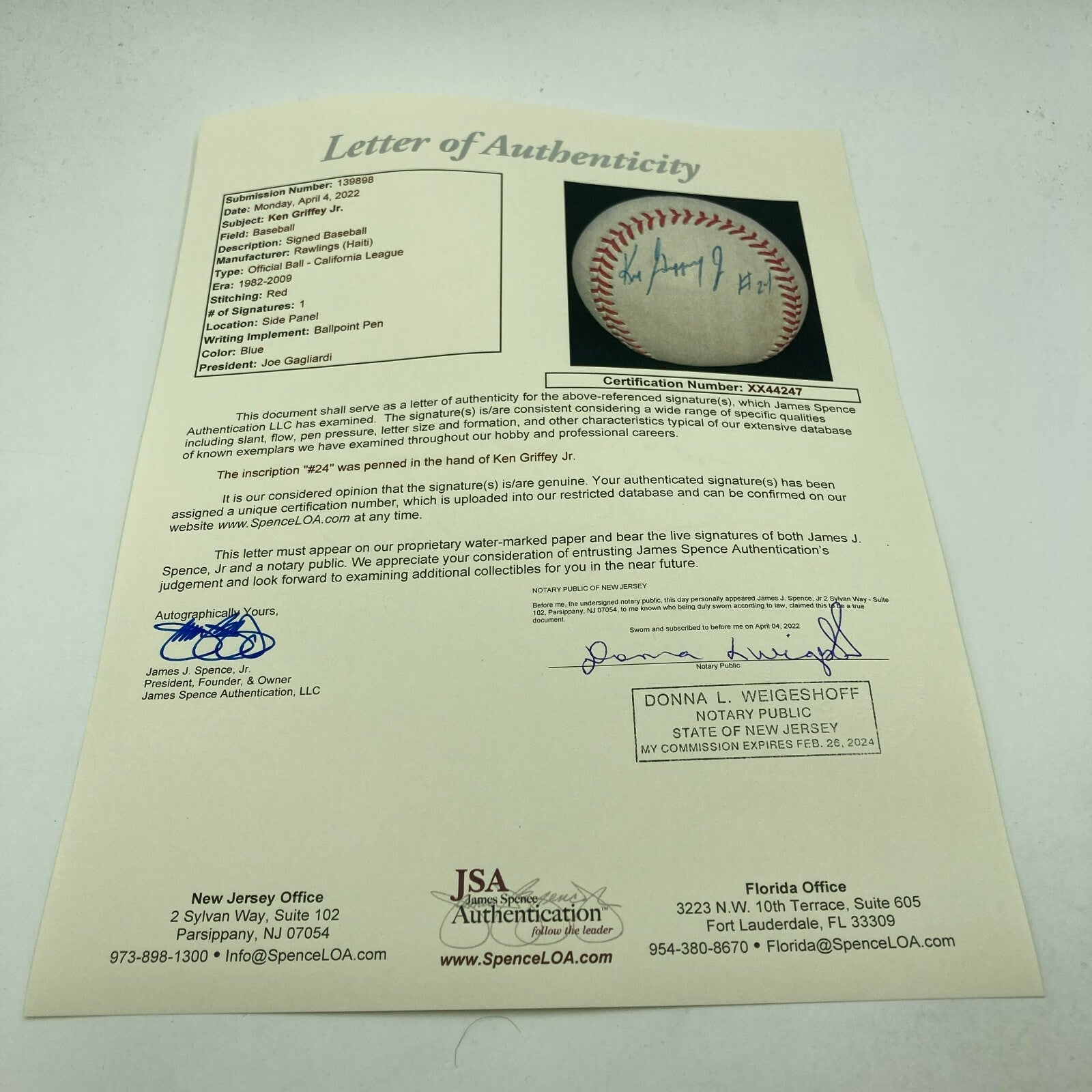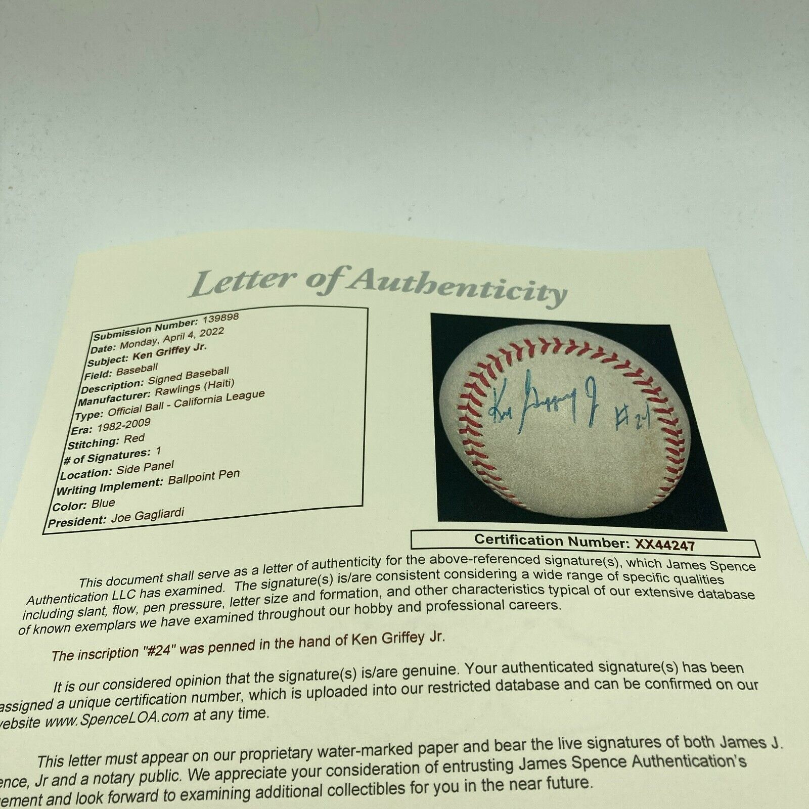 Incredible Ken Griffey Jr. #24 Pre Rookie 1988 Signed Official California League Minor League Baseball. One of the earliest known Griffey single signed baseballs in existence.