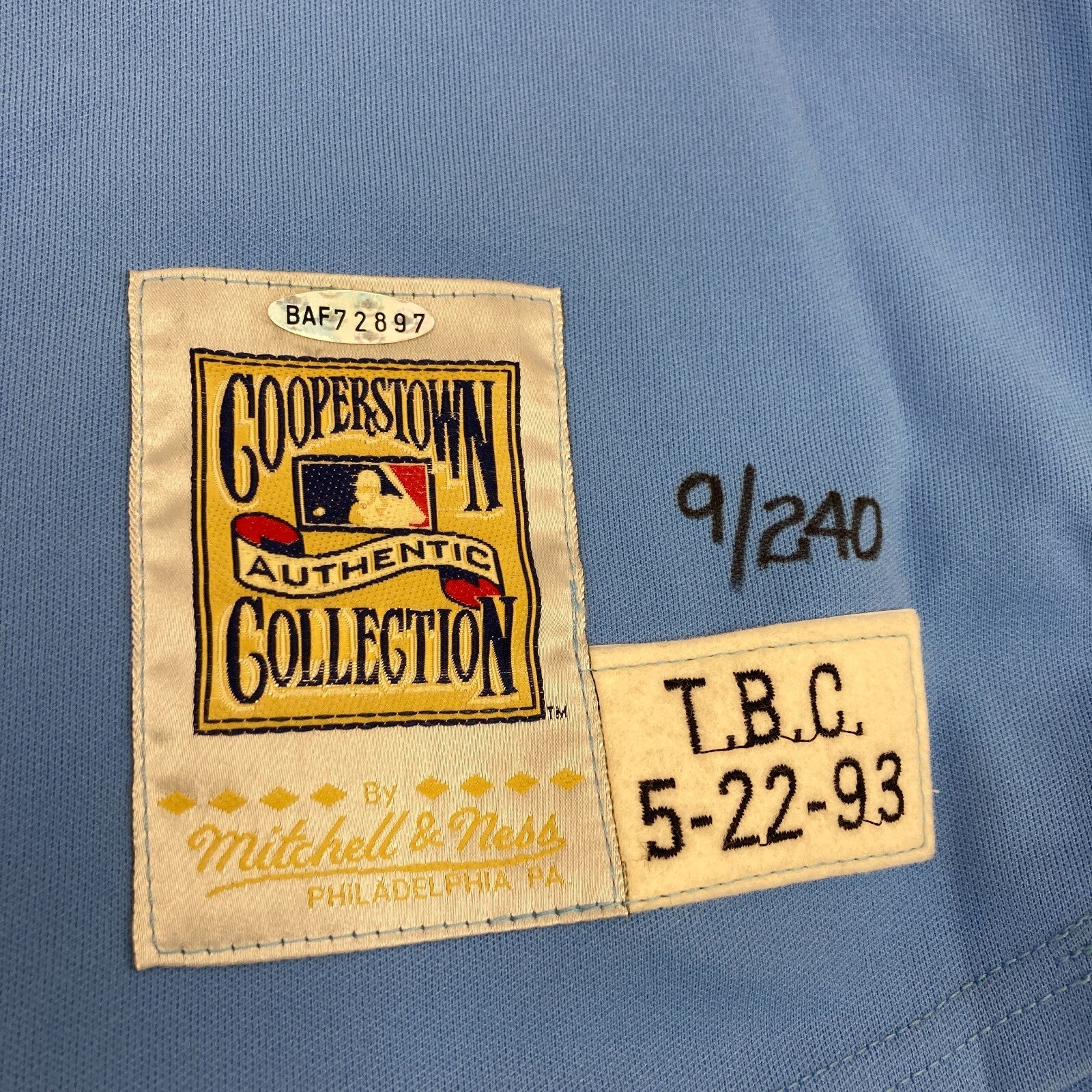 Ken Griffey Jr. Seattle Mariners "Turn Back the Clock" authentic jersey, signed by Griffey in black Sharpie on the left breast. This piece was signed by Griffey under the auspices of Upper Deck and is accompanied by a UD hologram label (affixed on the manufacturer's label). This was a limited-edition issue by Upper Deck and is hand-numbered "9/240" in black marker on the left front tail. The jersey (size 48), manufactured by Mitchell & Ness, remains in Mint condition.