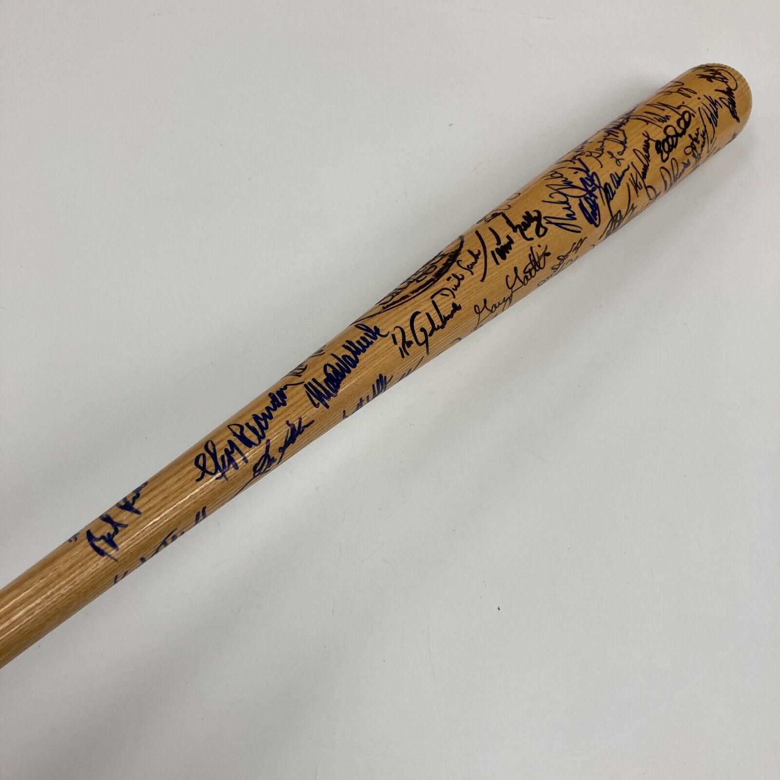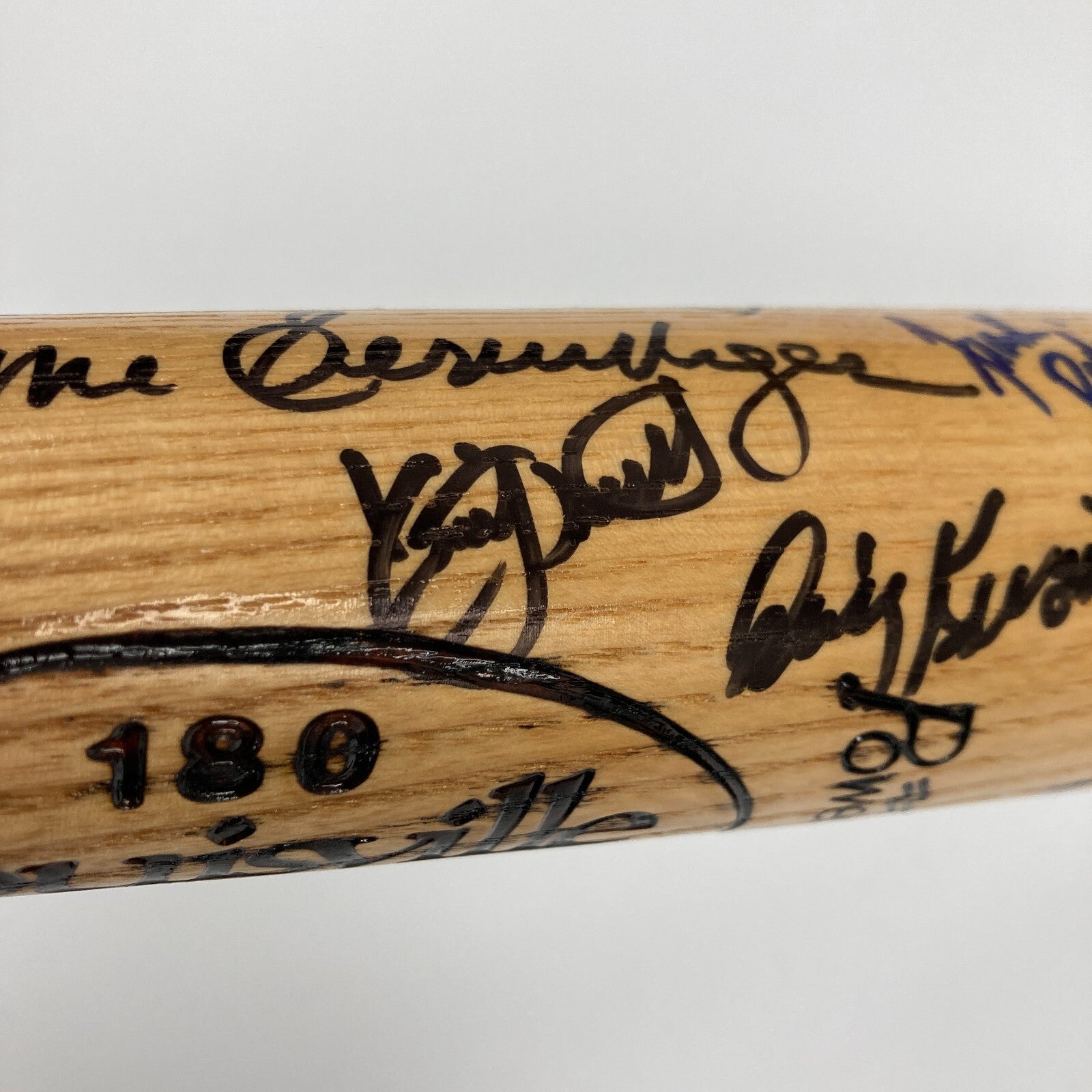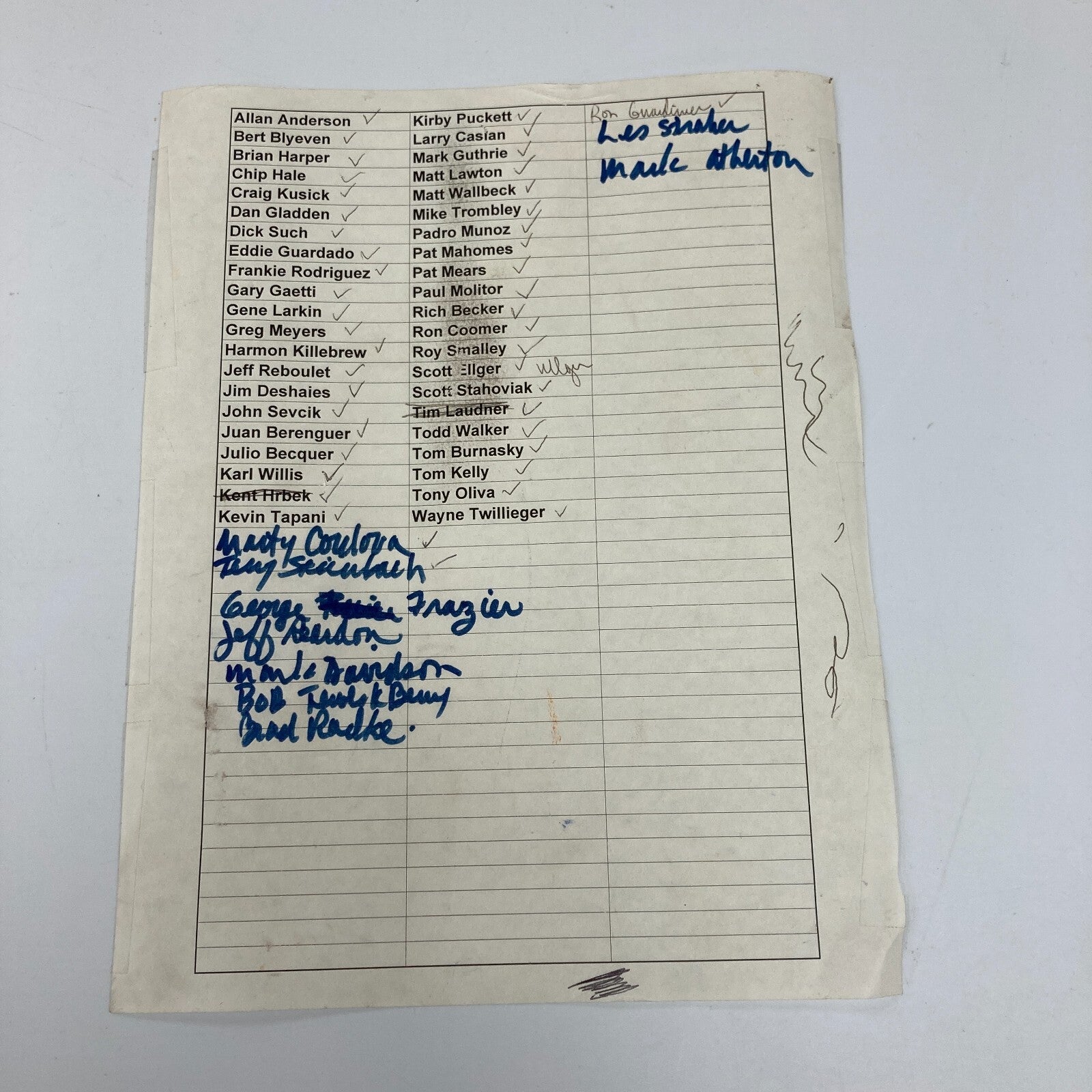 Minnesota Twins autographed bat signed by 55 former players. The Hall of Famers include Kirby Puckett, Harmon Killebrew, Bert Blyleven, Paul Molitor, & Tony Oliva. Other key signatures include Tom Kelly, Frank Viola, Brian Harper, & Tom Brunansky. Accompanied by a full Beckett Letter of Authenticity.