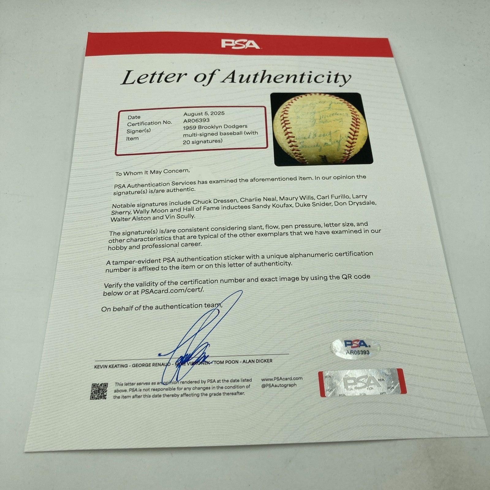 1959 Los Angeles Dodgers World Series Champs Team Signed Baseball 20 signatures with:
