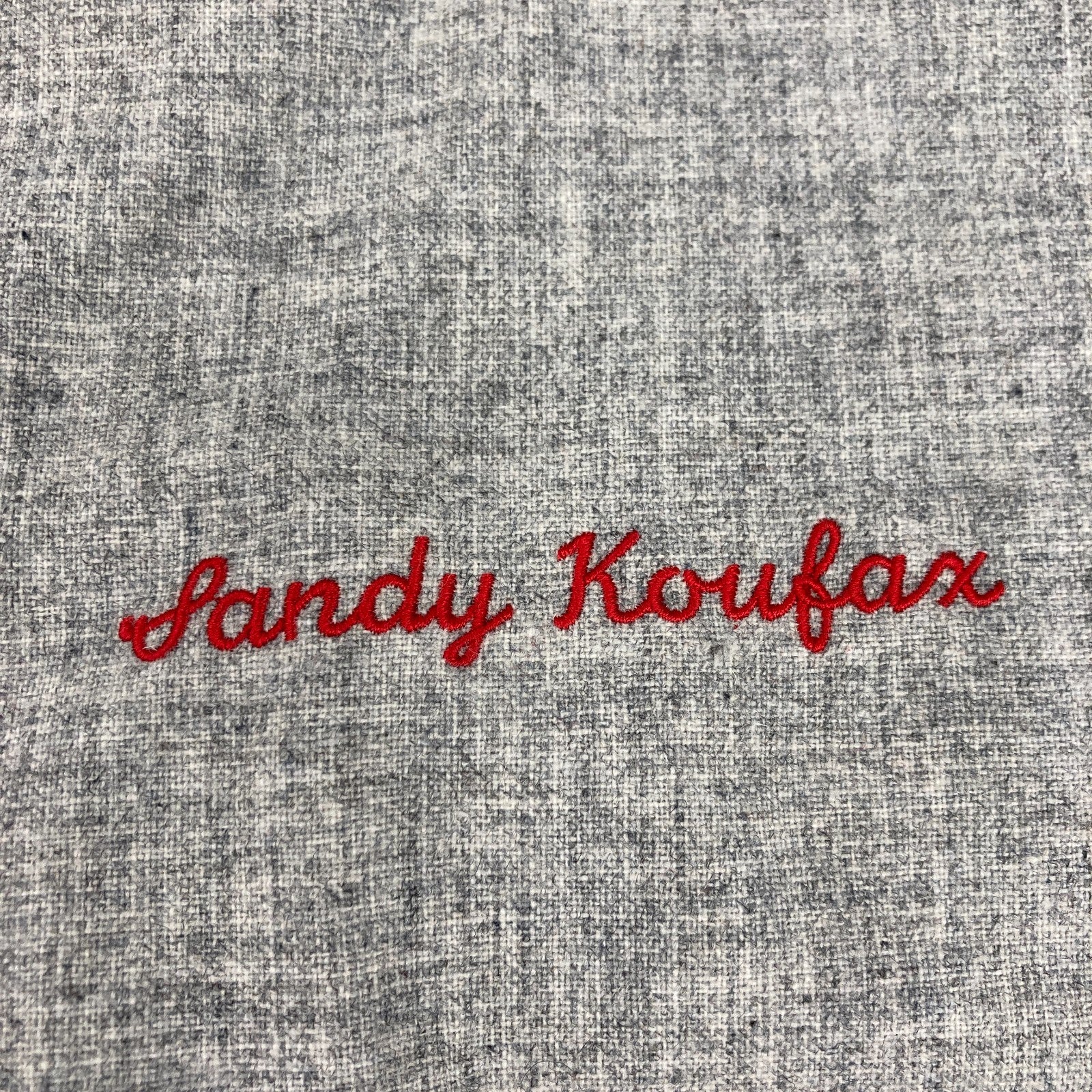The amazing Sandy Koufax is undoubtedly one of the best pitchers in baseball history. Displayed is an authentic Sandy Koufax Los Angeles Dodgers Mitchell & Ness gray away jersey that the Hall of Fame left-hander has signed and inscribed. Inscribed, "4 No Hitters 62, '63, '64, '65." Known as 'the Left Arm of God," Koufax had such a strong arm that the legendary Branch Rickey said, "This is the greatest arm I've ever seen." Koufax pitched 12 Major League seasons (1954-65), all with the Brooklyn/Los Angeles Dodgers. Koufax has a 165-87 career record, with a 2.76 ERA and 2,396 strikeouts. He was the first 3-time Cy Young Award winner, each time a unanimous selection, and a 3-time winner of the NL Pitching Triple Crown. He was a part of two Dodger World Championship teams, and one of his four no-hitters was a perfect game on Sept. 9, 1965, a 1-0 victory over the Chicago Cubs and the first time in the modern era that a left-hander had thrown a perfect game. Koufax is one of the very best Jewish athletes in professional sports history, and when he chose to forego pitching in Game 1 of the 1965 World Series because the contest was on Yom Kippur, a high holy day in his faith, he became even more renowned.