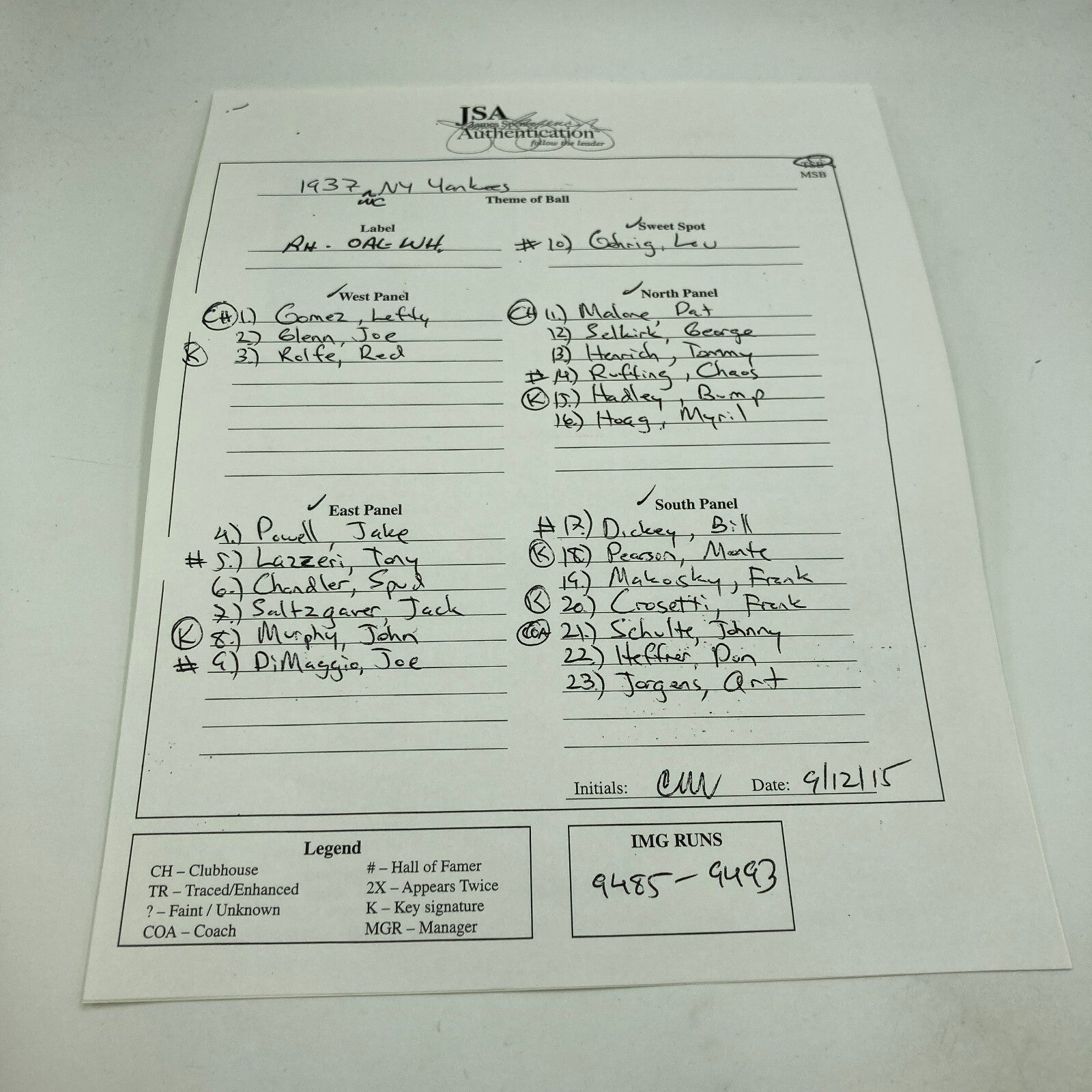 1937 New York Yankees World Series Champs Team Signed Baseball Lou Gehrig JSA