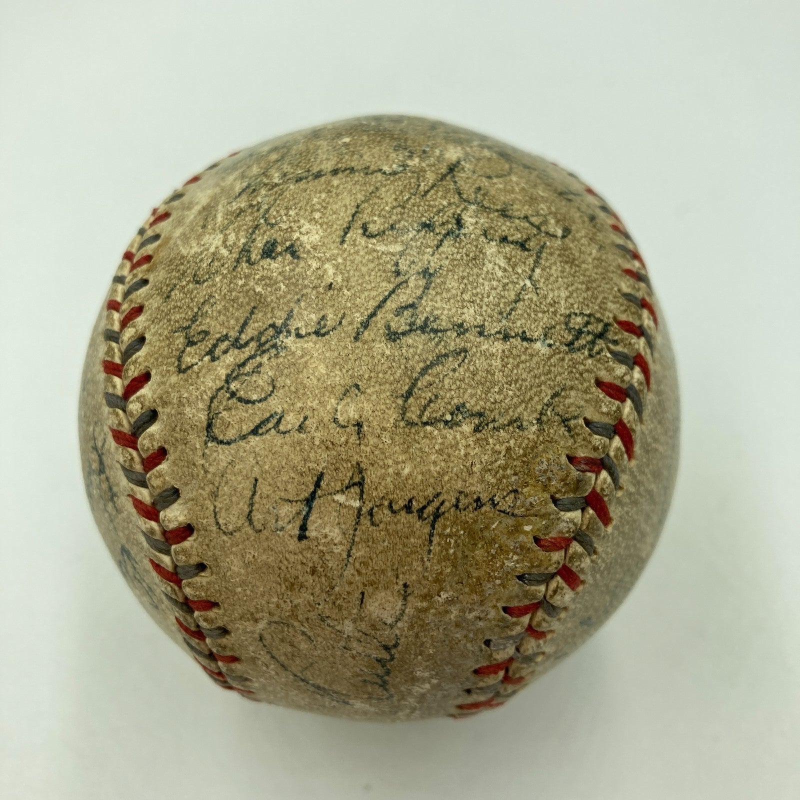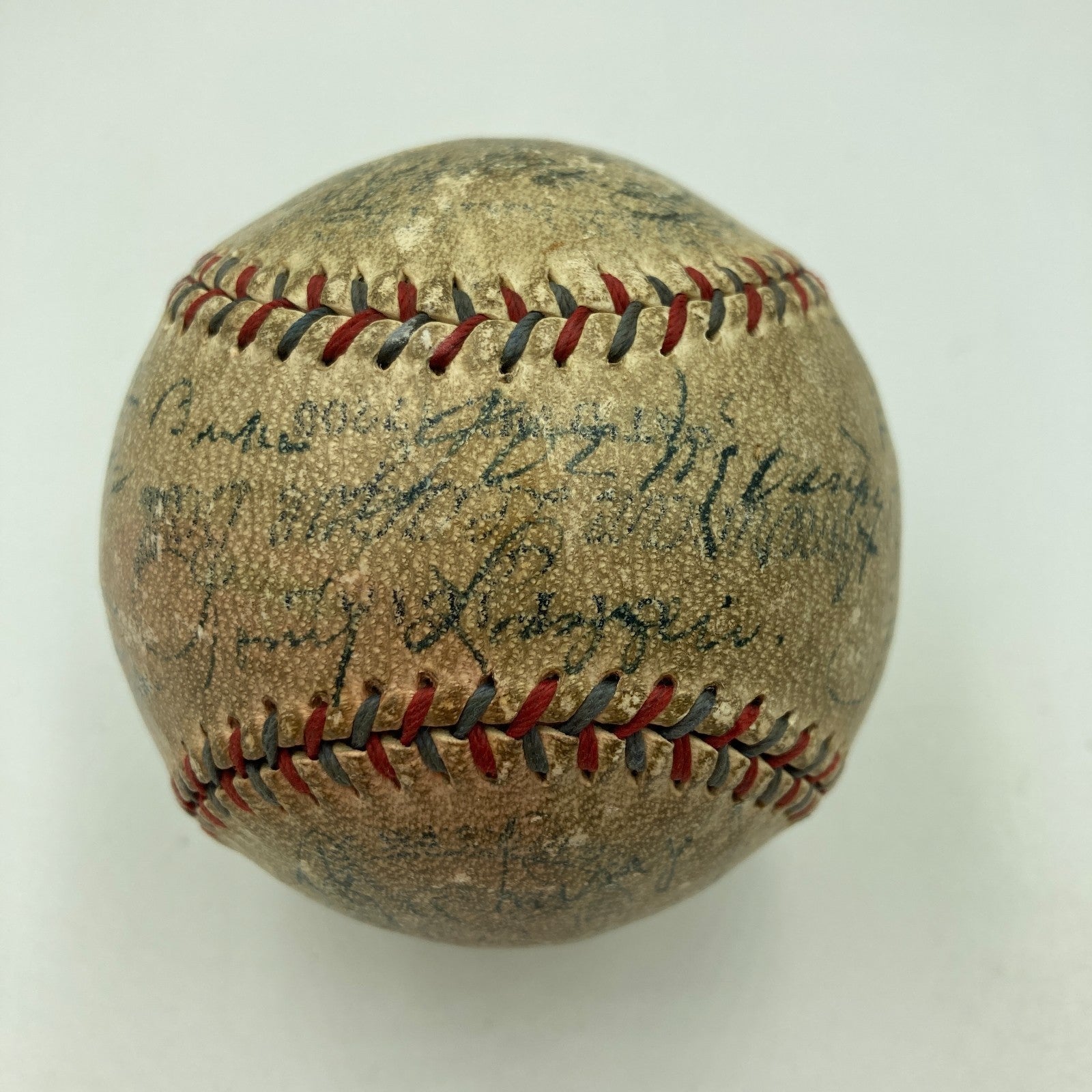 Red and blue stitched Reach W.Harridge Official American League baseball has been signed by (26) including Babe Ruth, Lou Gehrig, Joe Sewell, Lefty Gomez, Herb Pennock, Tony Lazzeri, Earle Combs, Bill Dickey, and team mascot Eddie Bennett. All are done in fountain pen.