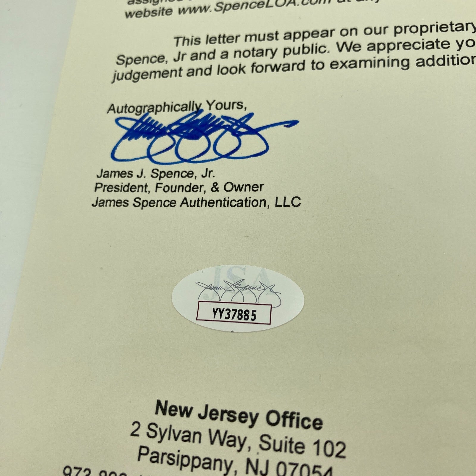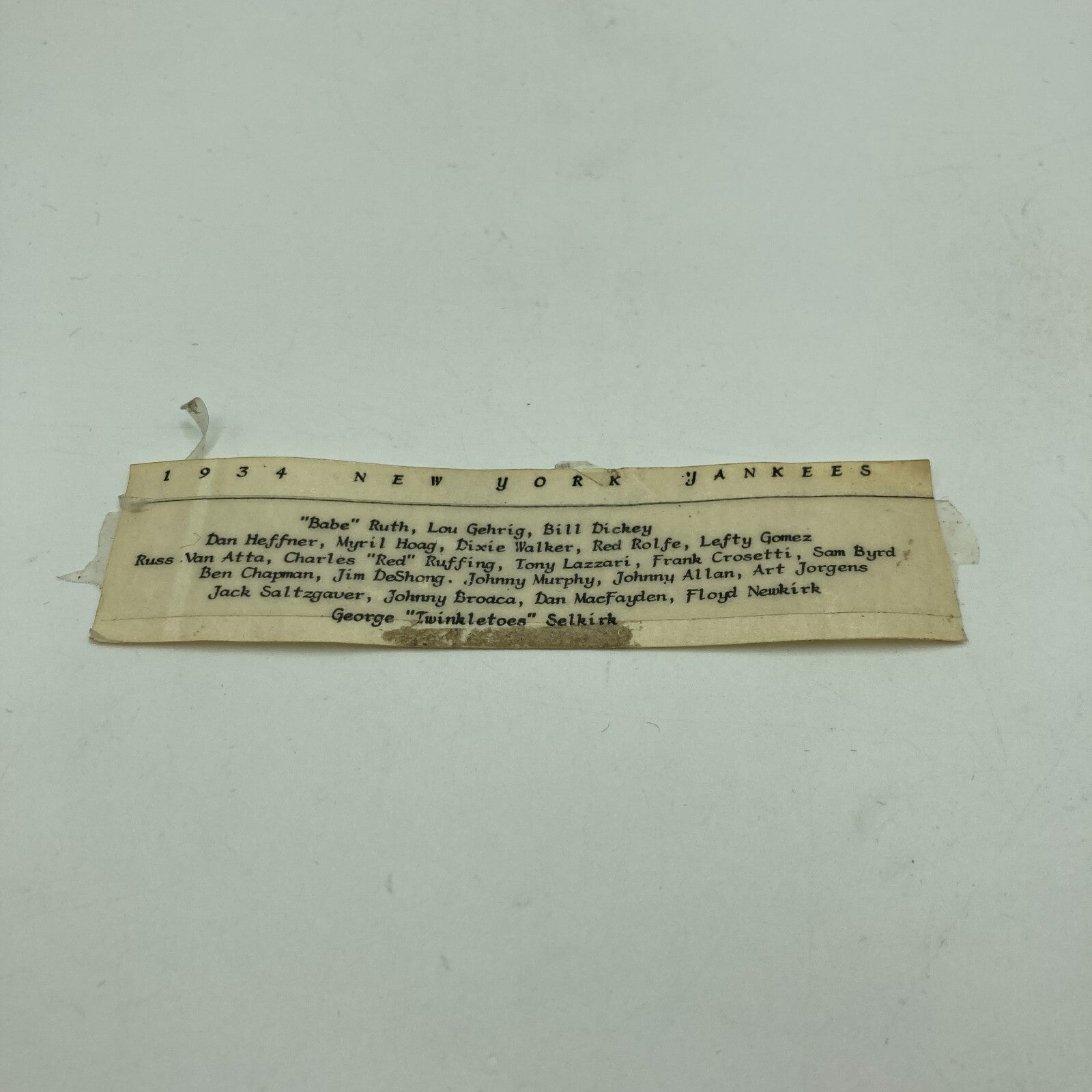 After winning the World Series in 1932, The Yankees spent the next few seasons retooling for their next dynasty. While the team awaited the arrival of Joe DiMaggio and the other young players that would dominate the AL from 1936 to 1939, able performers such as Ben Chapman, Johnny Allen, and Dixie Walker teamed up with veterans Red Ruffing, Lou Gehrig and Bill Dickey to keep great, if not pennant-winning baseball, at home in Yankee Stadium. This Spalding baseball is signed by 23 members of the 1934 New York Yankees in black ink. Hall of Famer Babe Ruth's signature appears on the sweet spot, with Hall of Famer Lou Gehrig's signature appearing on the opposite sweet spot. Key signatures on the ball include those from Myril Hoag, Bill Dickey, Don Heffner, Jack Saltzgaver, Danny MacFayden, Floyd Newkirk, Hall of Famers Red Ruffing, and Lefty Gomez. The ball comes with an LOA from JSA for the signatures. Very Rare to have both Ruth and Gehrig on the sweet spot.