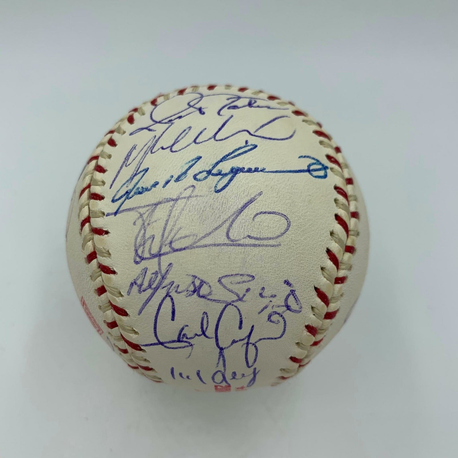 28 members of the 2004 AL All Star team and includes Ichiro Suzuki, Derek Jeter, Alex Rodriguez, Mariano Rivera, David Ortiz, Joe Torre, Ivan Rodriguez, Jason Giambi, Hideki Matsui, CC Sabathia, Gary Sheffield, Alfonso Soriano and many others. The ball has an MLB Authenticated hologram (MR653994).