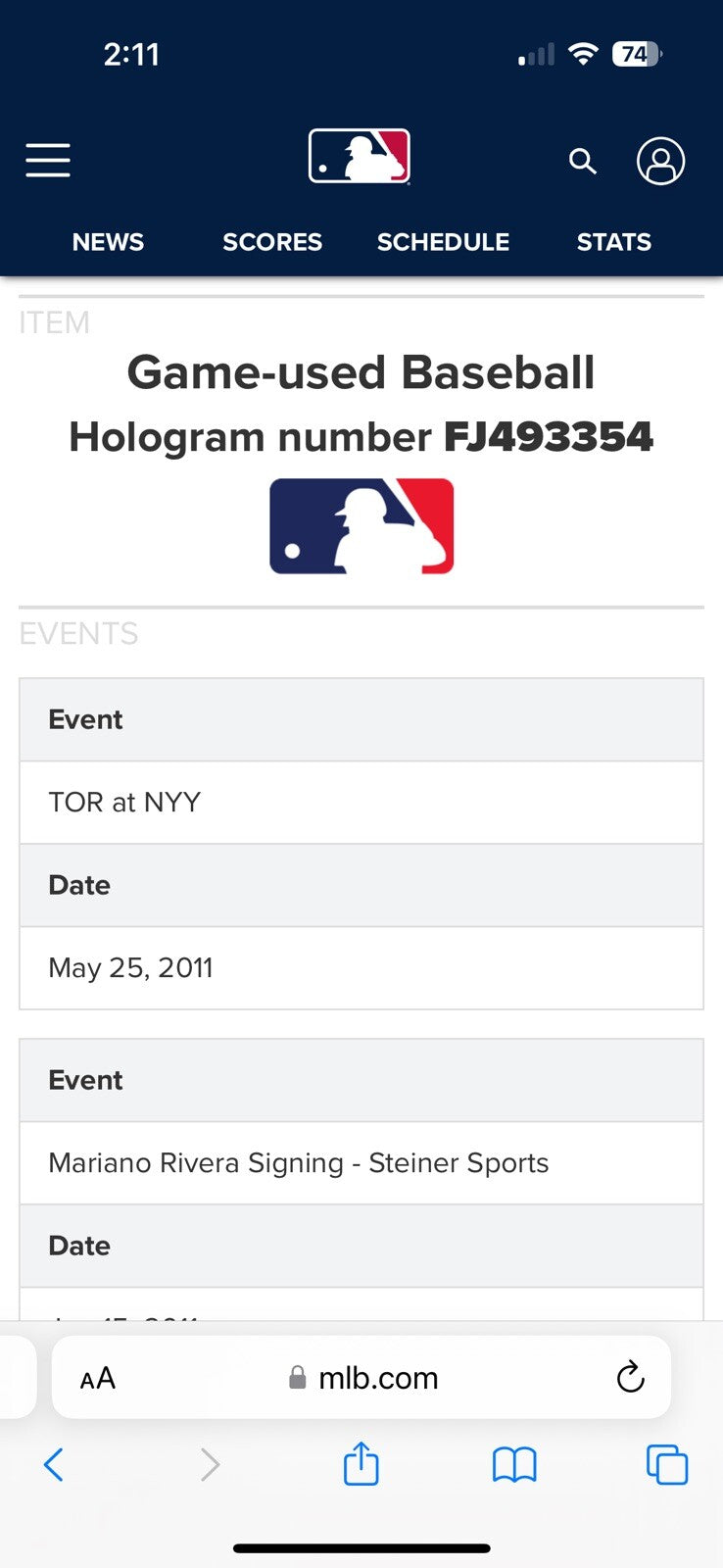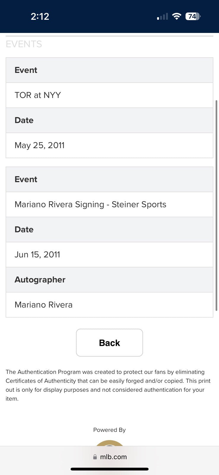 Click or scroll to zoom Tap or pinch to zoom Click or scroll to zoom Tap or pinch to zoom Click or scroll to zoom Tap or pinch to zoom Click or scroll to zoom Tap or pinch to zoom Click or scroll to zoom Tap or pinch to zoom Click or scroll to zoom Tap or pinch to zoom Click or scroll to zoom Tap or pinch to zoom Click or scroll to zoom Tap or pinch to zoom Click or scroll to zoom Tap or pinch to zoom Click or scroll to zoom Tap or pinch to zoom Click or scroll to zoom Tap or pinch to zoom Click or scroll to zoom Tap or pinch to zoom Mariano Rivera 1000th Appearance 5-25-2011 Signed Game Used Baseball Steiner COA $1,249.00 1 2 3 4 5 6 7 8 9 10+ Quantity Quantity Add to cart This item is a recurring or deferred purchase. By continuing, I agree to the cancellation policy and authorize you to charge my payment method at the prices, frequency and dates listed on this page until my order is fulfilled or I cancel, if permitted. Mariano Rivera 1000th Appearance 5-25-2011 Signed Game Used Baseball. Numbered 15/15. The ball includes MLB Authentic and Steiner holograms affixed near the label. Comes with Steiner COA. D#123