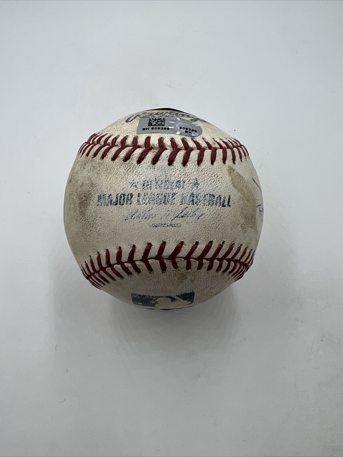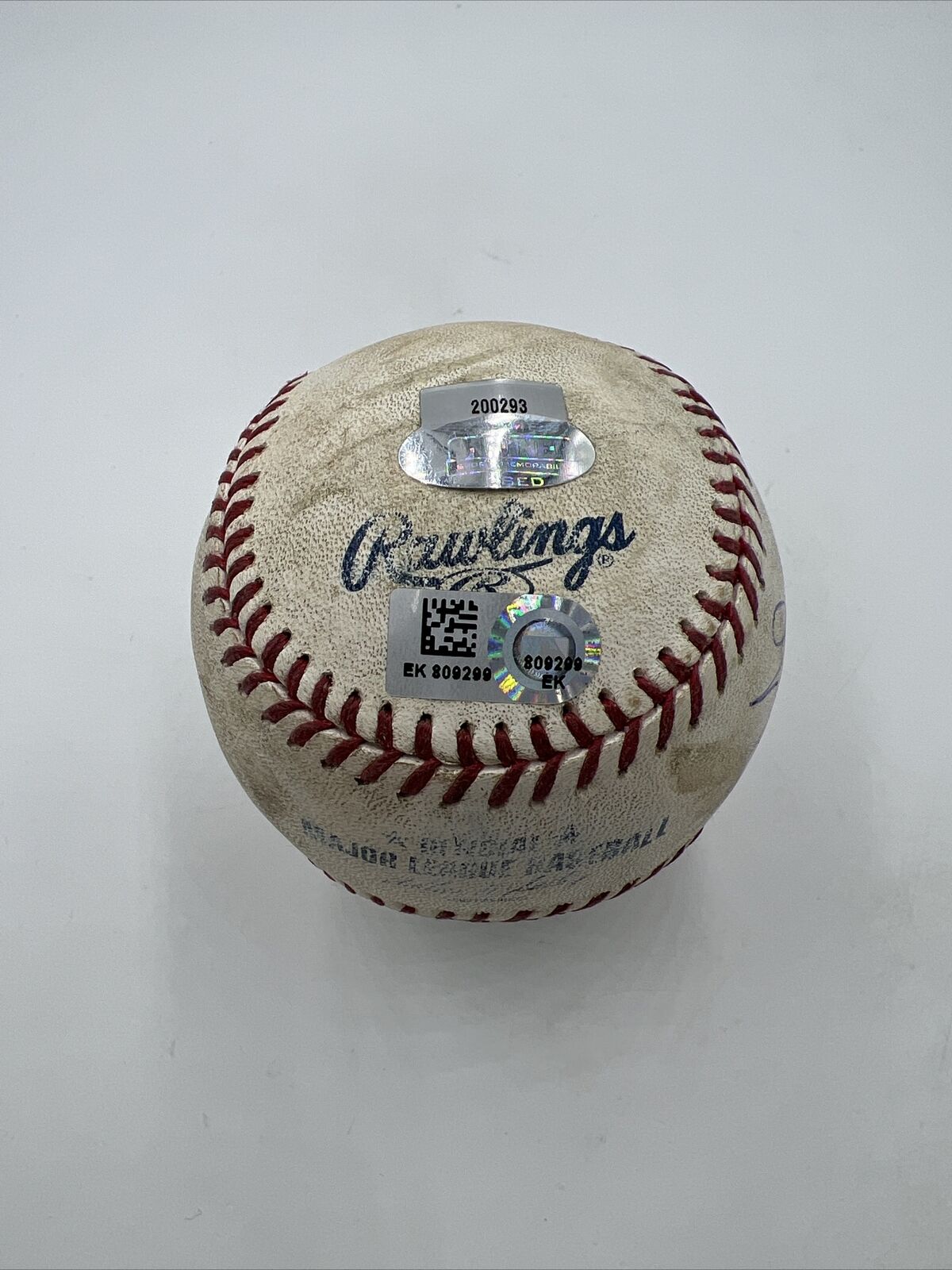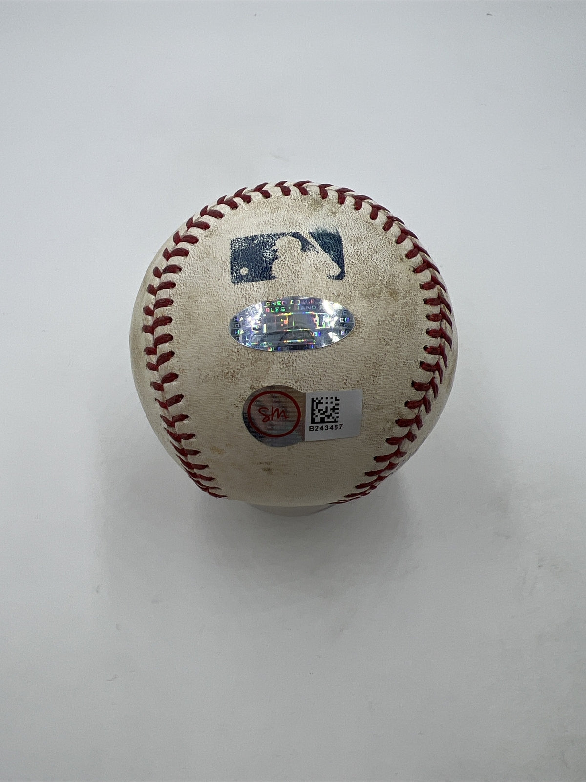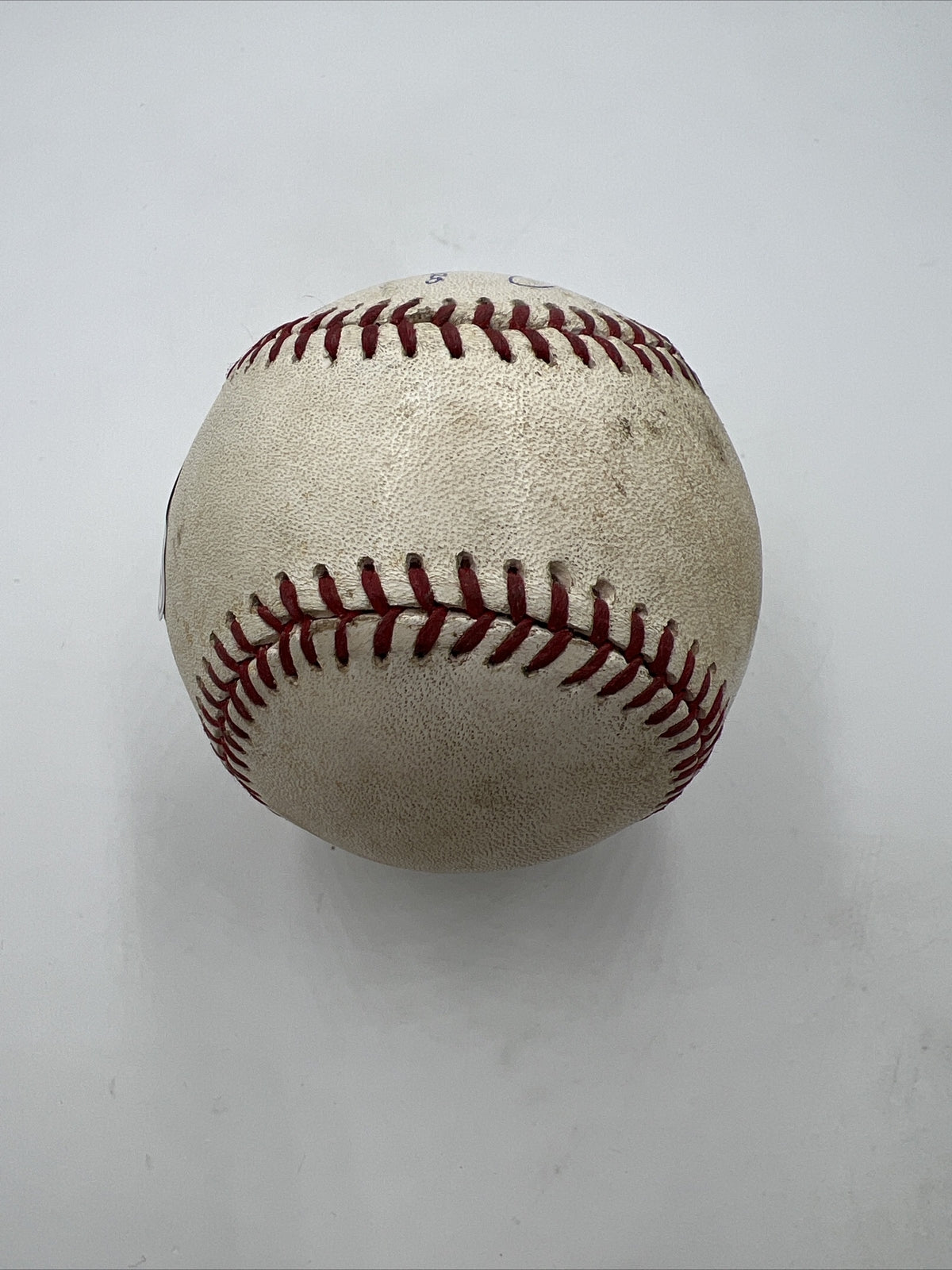 This baseball was used during Mariano Rivera's final game on Sept. 26, 2013 vs. Tampa, and is signed on the side panel in blue ballpoint pen. Rivera added "Final Season in Pinstripes, Exit Sandman 9/26/13" under his signature and the ball is hand-numbered 22/24. The ball includes Steiner Game-Used, MLB and Steiner holograms affixed near the label.