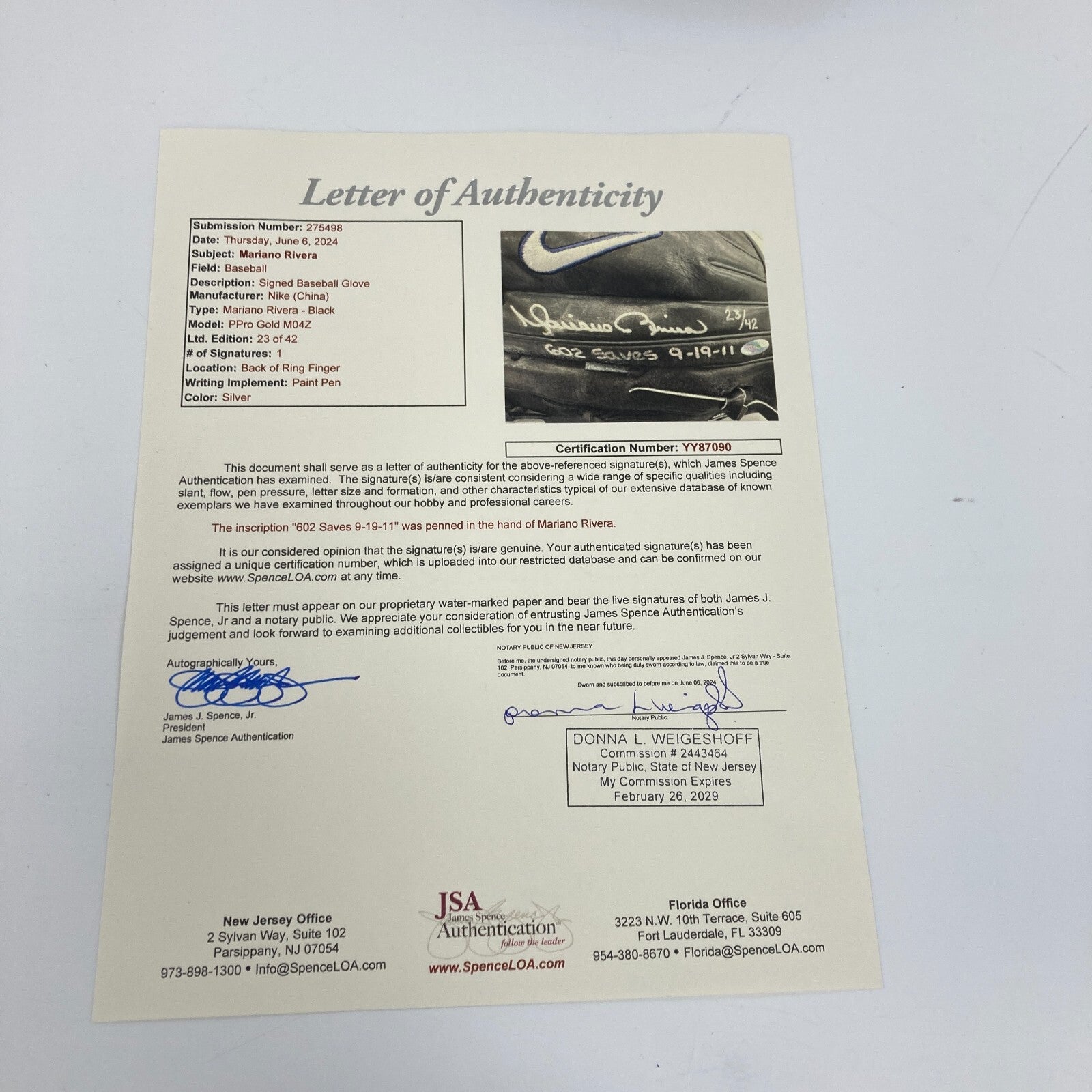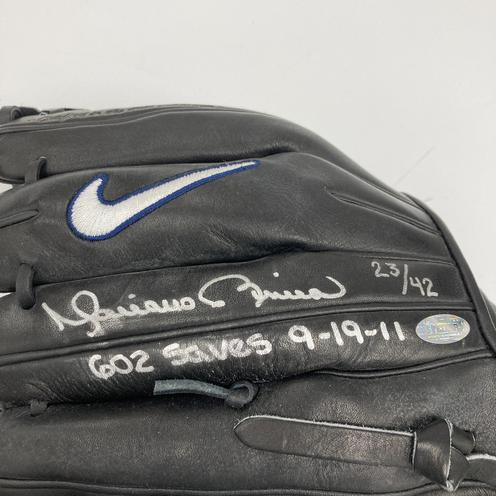 Click or scroll to zoom Tap or pinch to zoom Click or scroll to zoom Tap or pinch to zoom Click or scroll to zoom Tap or pinch to zoom Click or scroll to zoom Tap or pinch to zoom Click or scroll to zoom Tap or pinch to zoom Click or scroll to zoom Tap or pinch to zoom Click or scroll to zoom Tap or pinch to zoom Click or scroll to zoom Tap or pinch to zoom Click or scroll to zoom Tap or pinch to zoom Click or scroll to zoom Tap or pinch to zoom Mariano Rivera Signed Authentic Nike Game Model Baseball Glove JSA COA Sold out 1 2 3 4 5 6 7 8 9 10+ Quantity Quantity Sold out Hall of Famer Mariano Rivera signed and inscribed "602 Saves 9-19-11" with a silver marker across this offered limited edition #23/42 Nike Pro Model glove. Comes with full letter JSA COA. Bin #11
