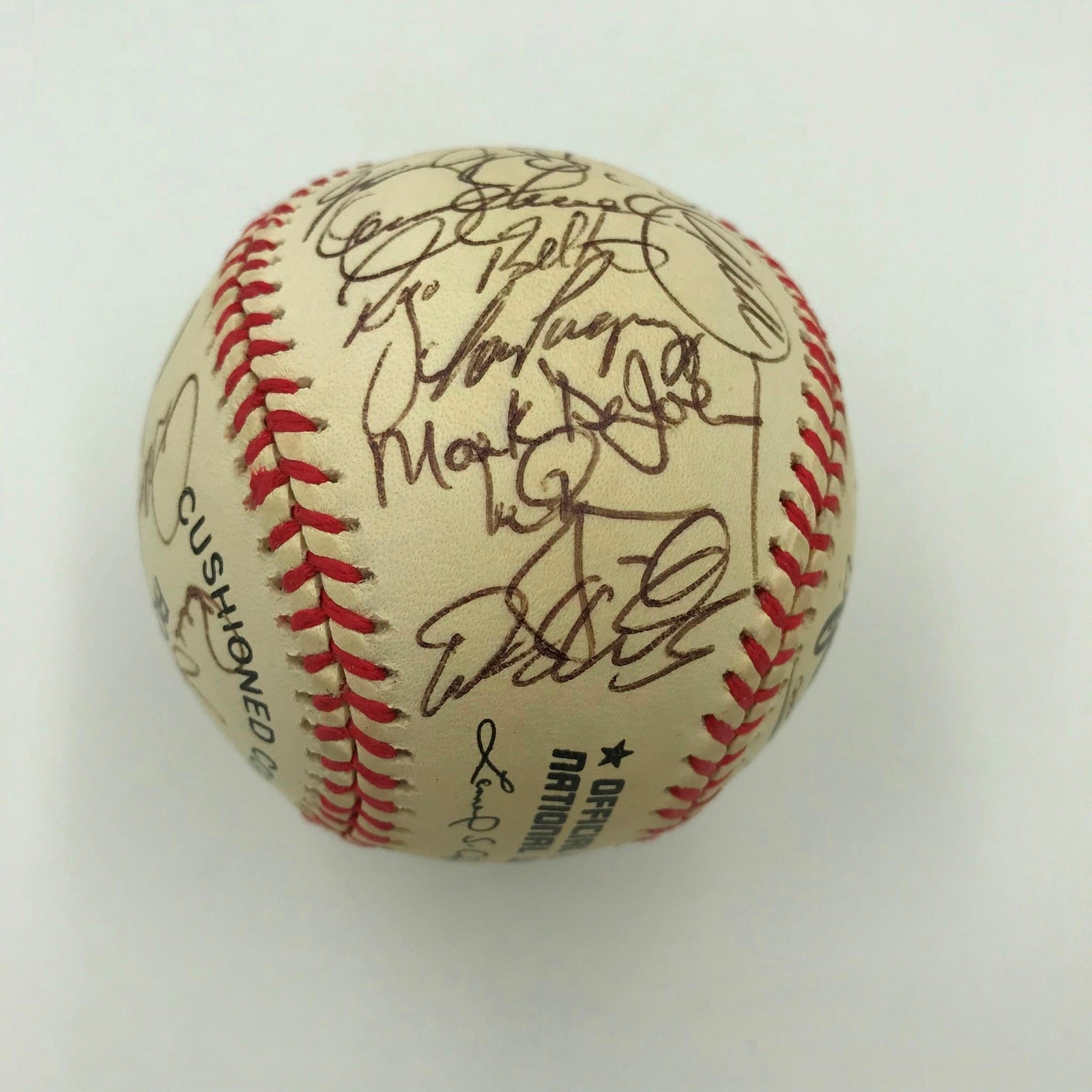 Nice 1997 St. Louis Cardinals Team Signed Official National League Baseball With over 30 signatures including Mark McGwire, Tony Larussa and many others. Guaranteed for life to pass PSA DNA or JSA or your money back.
