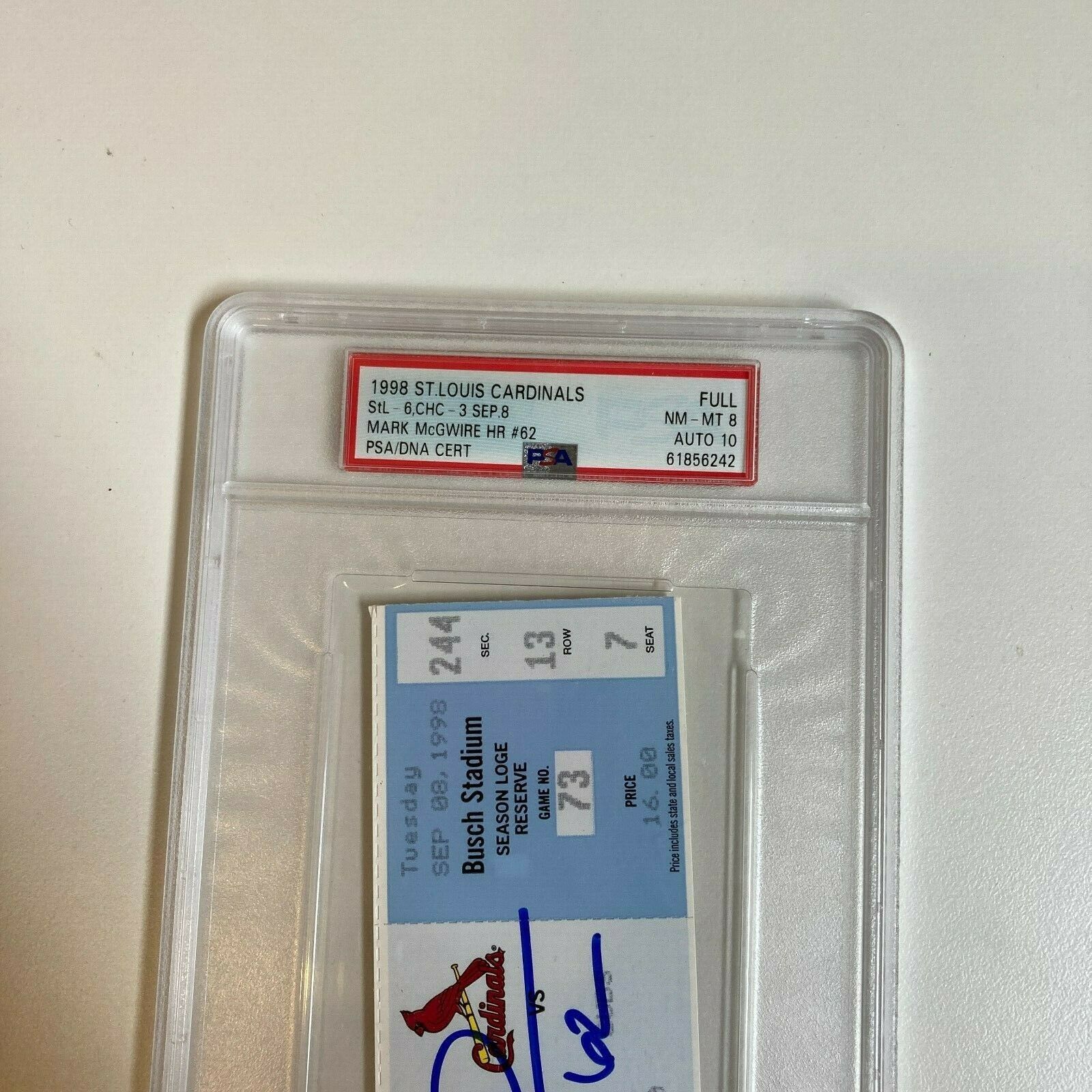 Mark Mcgwire Signed 1998 Home Run #62 Ticket PSA DNA GEM MINT 10 Auto