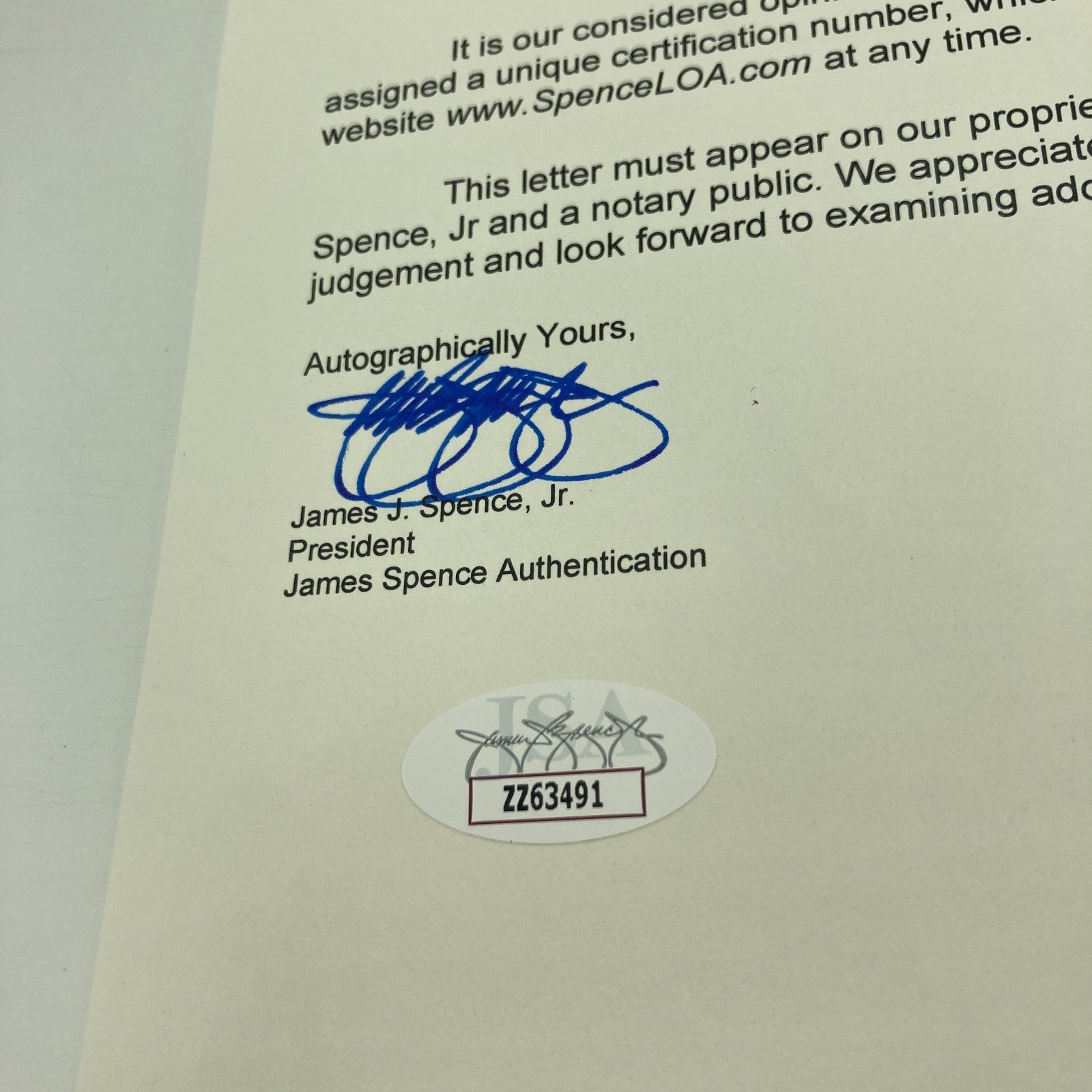 Comes with full letter JSA COA.