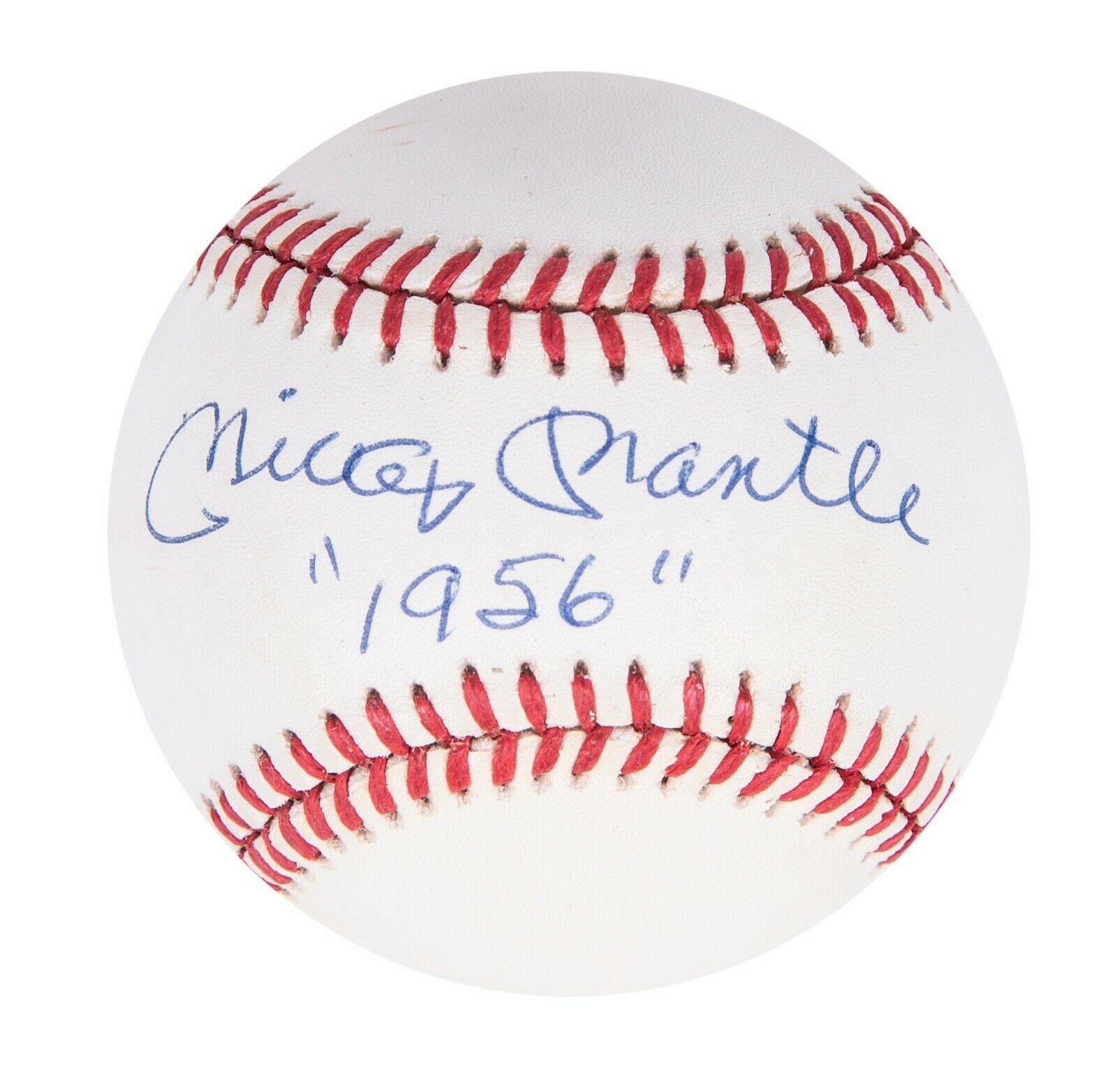 Beautiful Mickey Mantle "1956" Signed Baseball PSA DNA Autograph Grade MINT 9