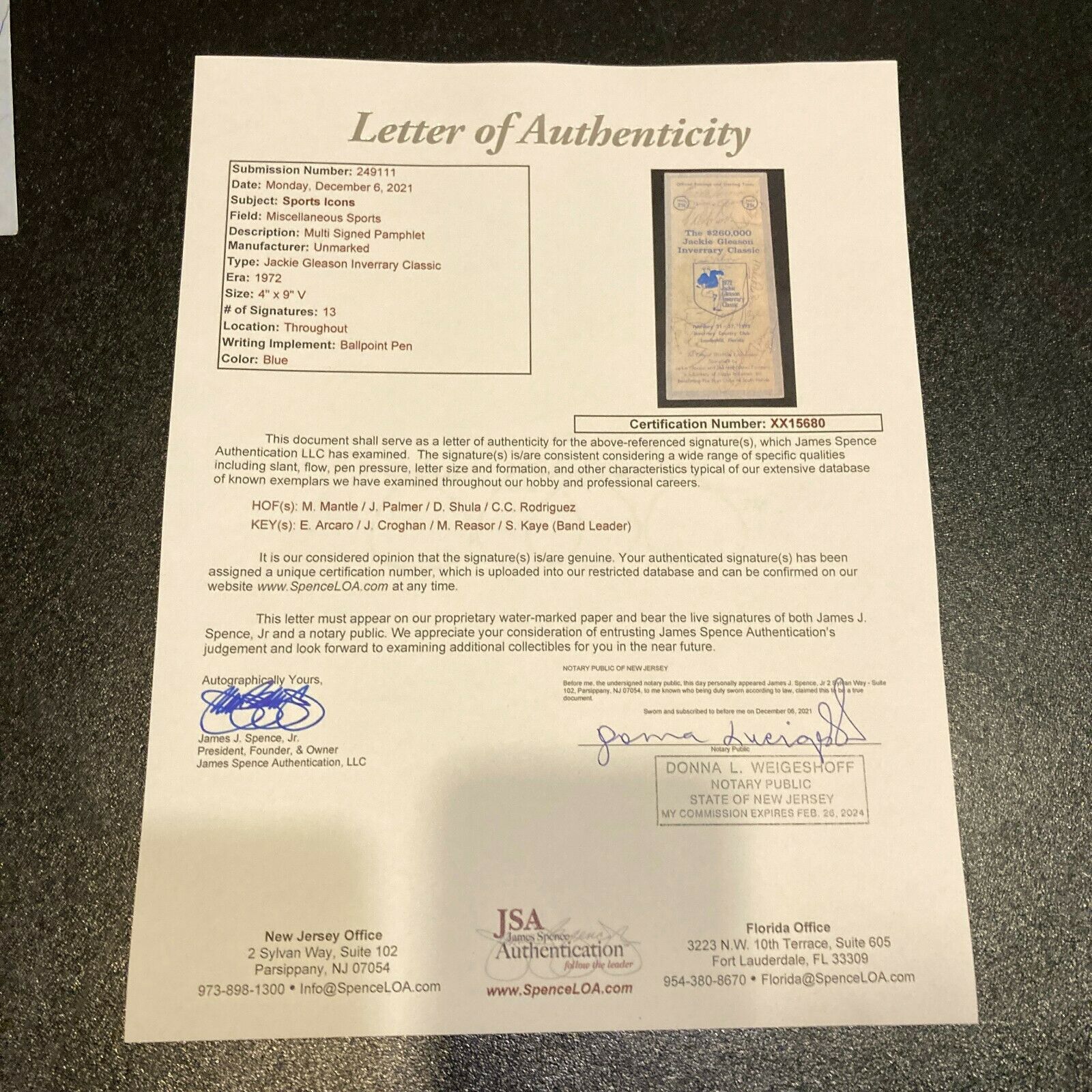 Mickey Mantle Eddie Arcaro Jackie Gleason Golf Classic Signed Program JSA COA