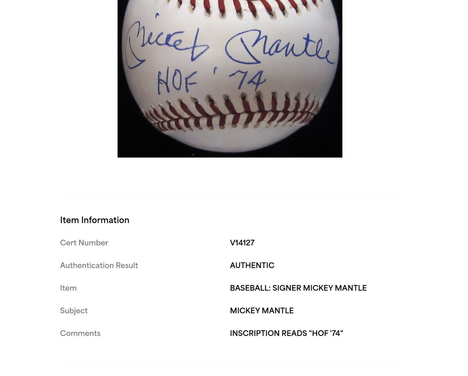 Mickey Mantle Hall Of Fame HOF 1974 Signed Baseball PSA DNA