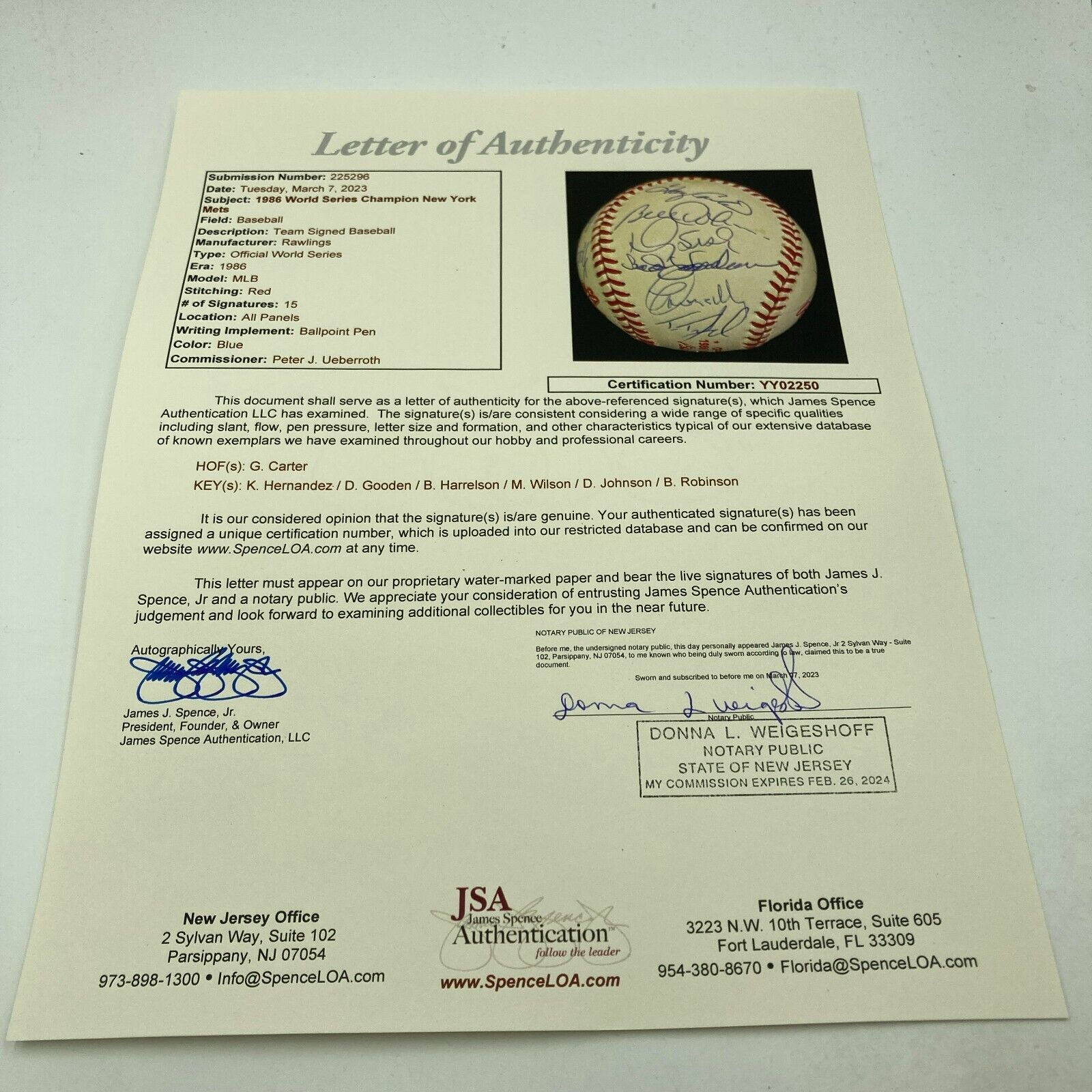 Signed by the same (15) including Davey Johnson, Gary Carter, Keith Hernandez, Dwight Gooden, Lenny Dykstra, Mookie Wilson, Rafael Santana, Tim Teufel, Lee Mazzilli, Howard Johnson, Doug Sisk, Ed Hearn, Mel Stottlemyre, Bill Robinson, and Bud Harrelson.