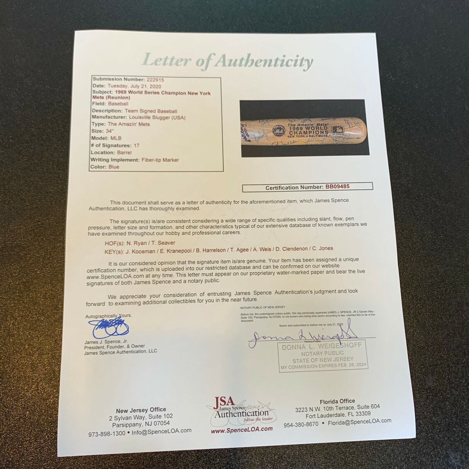 Sold out 1969 New York Mets World Series Champs Team Signed Bat Nolan Ryan Tom Seaver JSA Limited-edition 1969 New York Mets World Champions commemorative bat, produced by Rawlings, signed in blue marker by twenty-six members of the clu... View full details