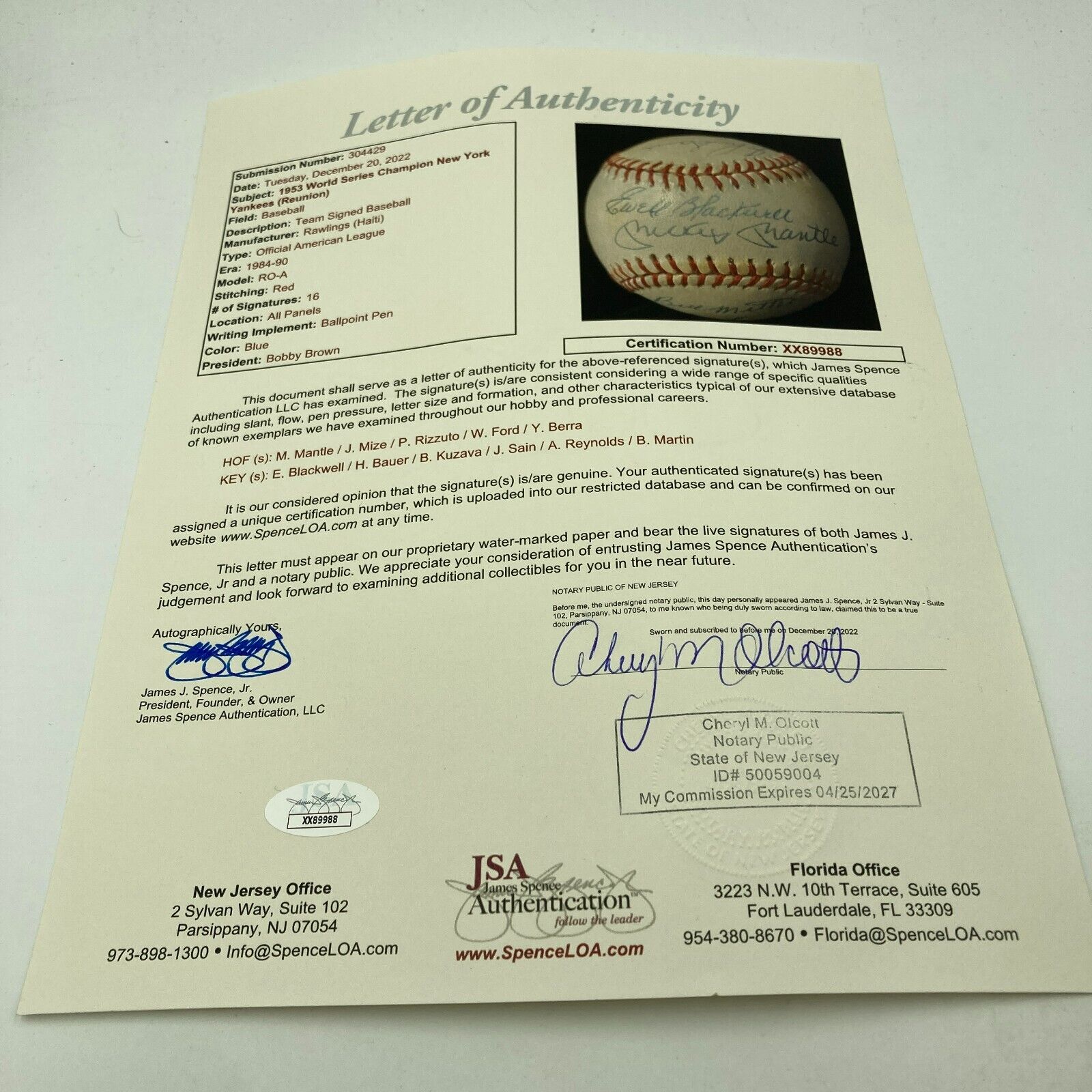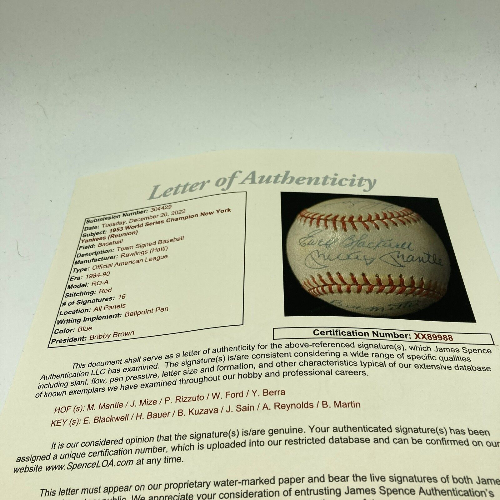 1953 New York Yankees World Series Champs Team Signed American League Baseball. 16 signatures with Mickey Mantle, Yogi Berra, Johnny Mize, Whitey Ford, Billy Martin and others.