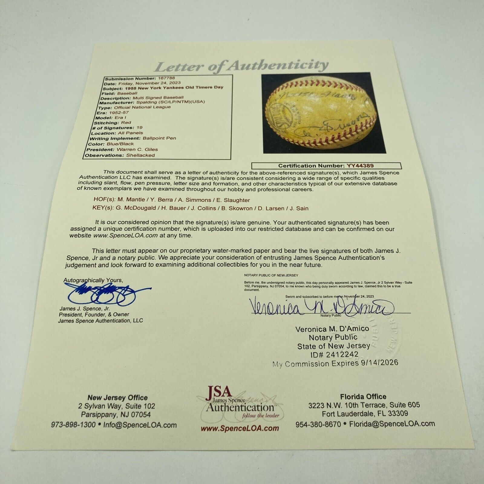 1955 Yankees Old Timers Day Signed Baseball Mickey Mantle Al Simmons JSA COA