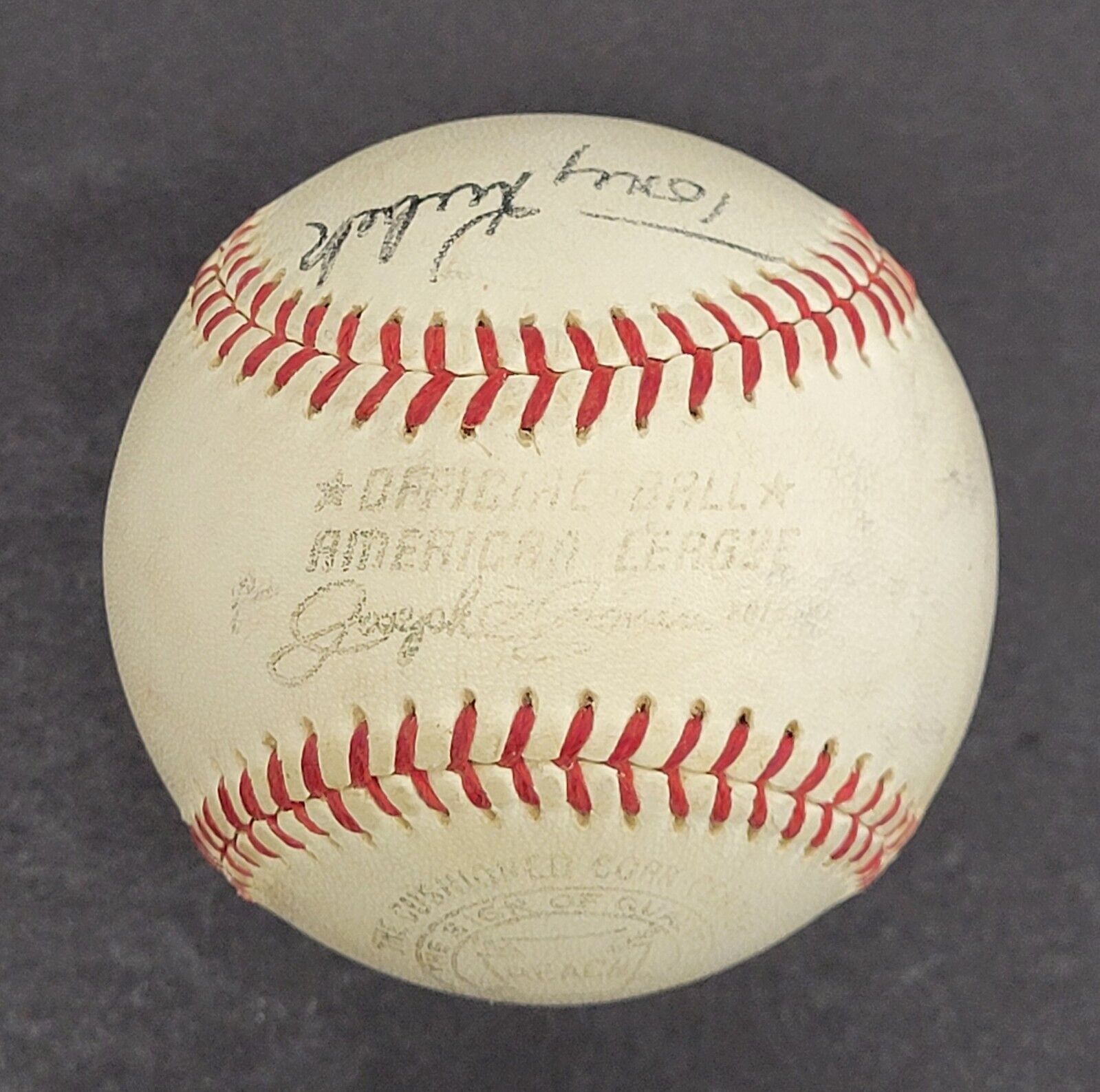 1961 New York Yankees multi-signed baseball. Signatures include Clete Boyer, Yogi Berra, Tony Kubek, Joe DeMaestri, Bill Skowron, Bob Hale, Earl Torgeson, John Sain, John Blanchard, Tex Clevenger, Hec Lopez, Ralph Terry and Rollie Sheldon. There are multiple signatures that are too light to determine. Accompanied by a Beckett Letter of Authenticity.