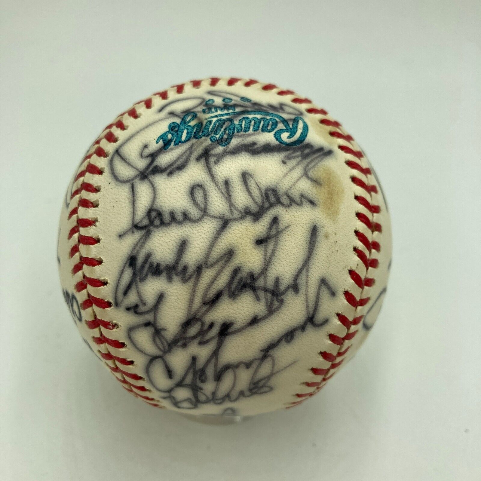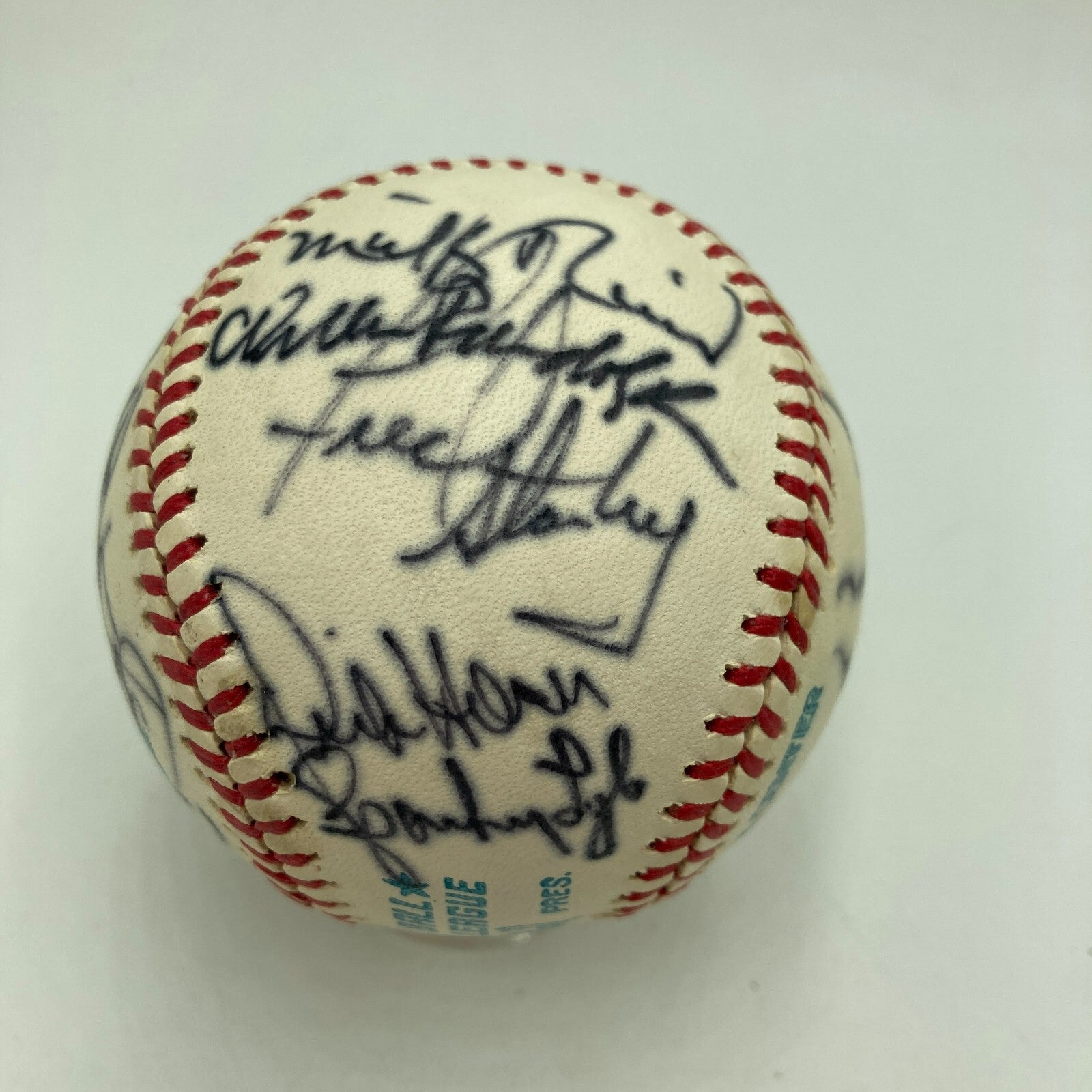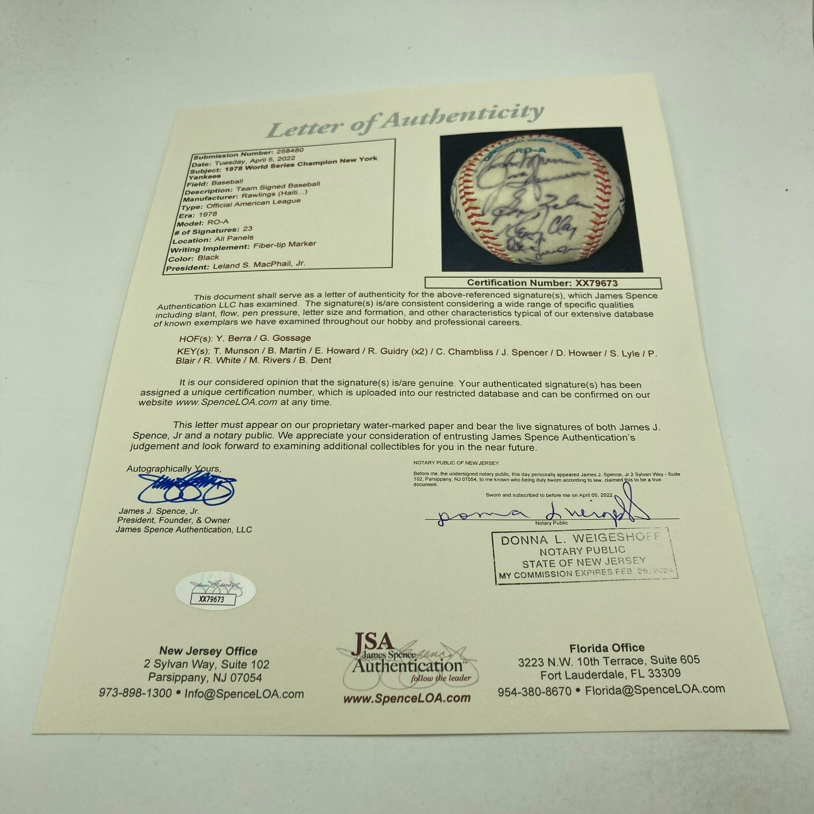 Rare 1978 New York Yankees World Series Champs team signed official American League baseball. 23 signatures with Thurman Munson, Yogi Berra, Elston Howard, Billy Martin and many others. All the signatures are authentic. There are NO clubhouse signatures.