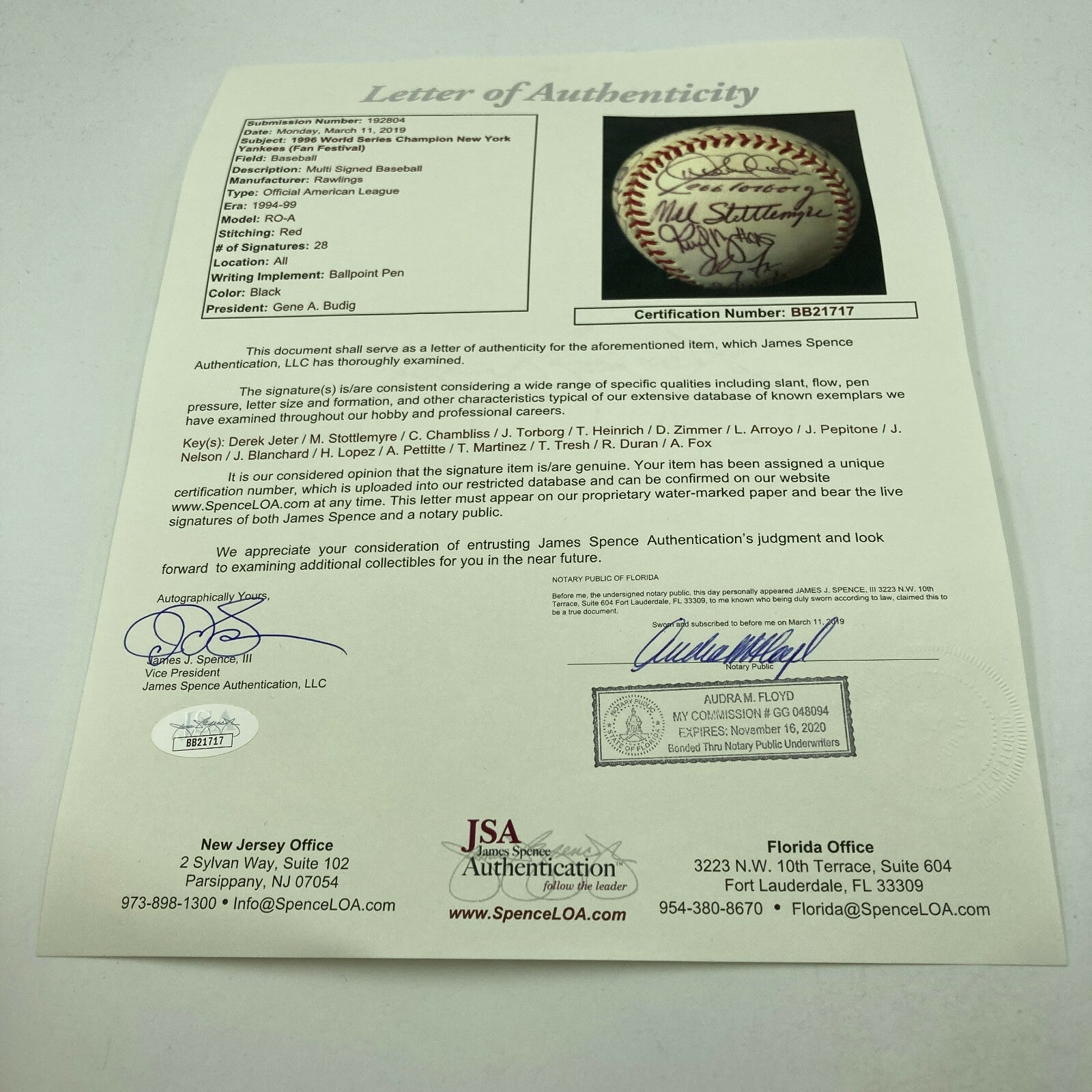 Click or scroll to zoom Tap or pinch to zoom Click or scroll to zoom Tap or pinch to zoom Click or scroll to zoom Tap or pinch to zoom Click or scroll to zoom Tap or pinch to zoom Click or scroll to zoom Tap or pinch to zoom Click or scroll to zoom Tap or pinch to zoom Click or scroll to zoom Tap or pinch to zoom Click or scroll to zoom Tap or pinch to zoom 1996 New York Yankees World Series Champs Team Signed Baseball Derek Jeter JSA $1,399.00 1 2 3 4 5 6 7 8 9 10+ Quantity Quantity Add to cart This item is a recurring or deferred purchase. By continuing, I agree to the cancellation policy and authorize you to charge my payment method at the prices, frequency and dates listed on this page until my order is fulfilled or I cancel, if permitted. 1996 New York Yankees World Series Champs Team Signed Baseball. 28 signatures with Derek Jeter, Andy Pettitte, Tino Martinez and many others. Comes with Full letter JSA COA. #960466377283 D#32