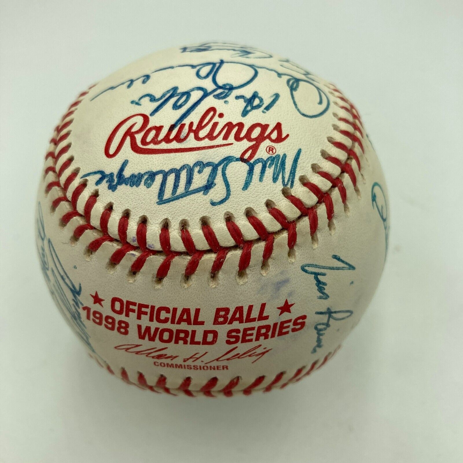 1998 New York Yankees team signed World Series baseball (EX). Rawlings official 1998 World Series ball signed by (22) members of the champion Yankees including Joe Torre, Tim Raines, Paul O'Neill, Orlando Hernandez, Ramiro Mendoza, Chuck Knoblauch, Hideki Irabu, Chad Curtis, Joe Girardi, Mike Stanton, Homer Bush, Andy Pettitte, Chili Davis, and others (Jeter and Williams are clubhouse signed).