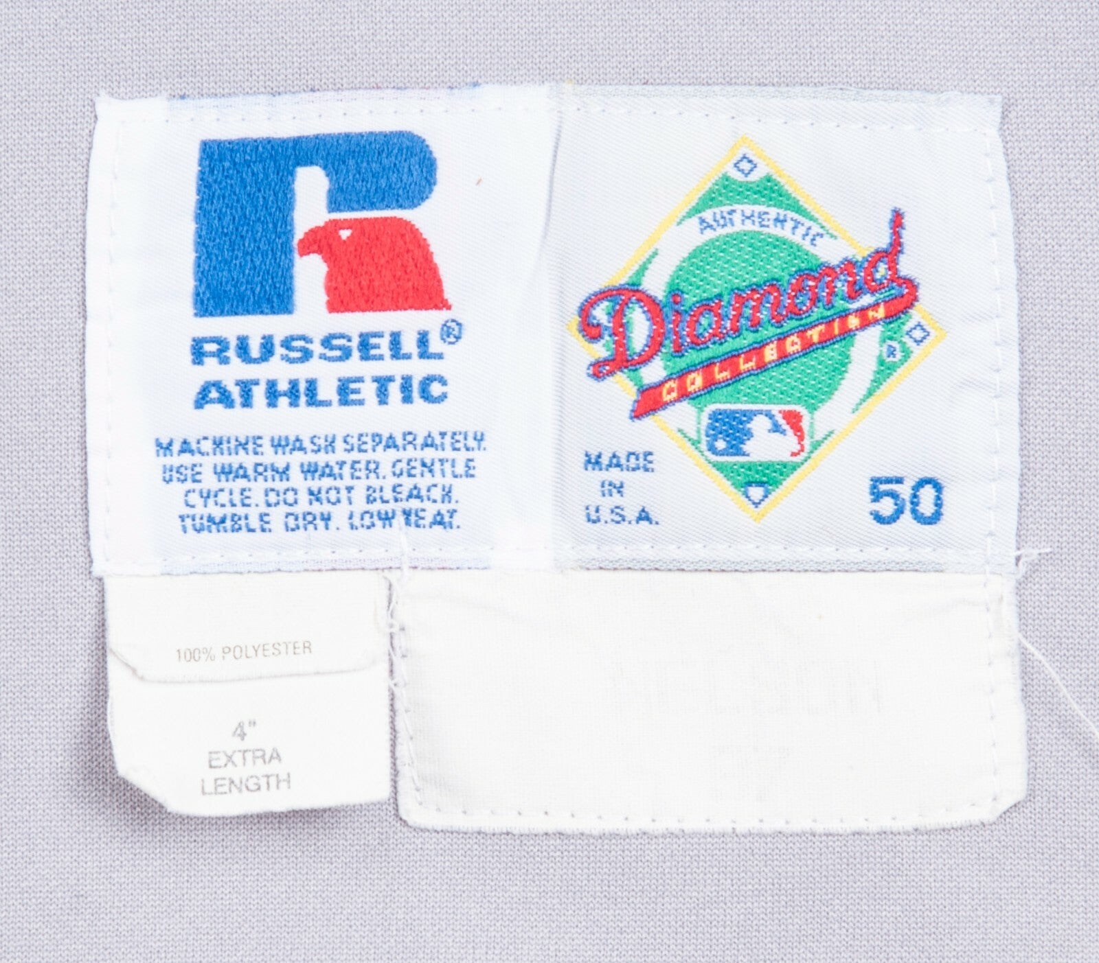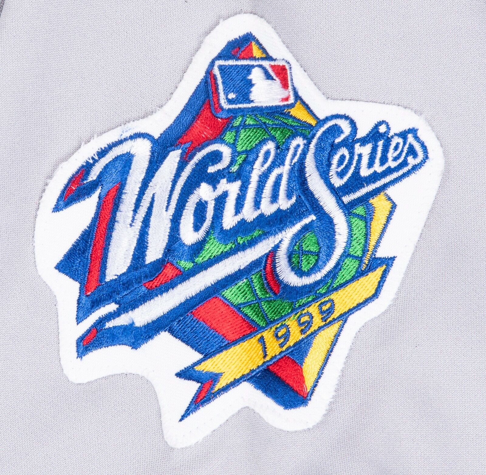 Offered here is the jersey Nelson wore during the Historic 1999 World Series that comes directly from the personal collection of Jeff Nelson. Nelson was flawless in the postseason, not allowing any earned runs as the Yankees cruised to another World Series title. This Russell Athletic size 50 button-down road Yankees jersey has “NEW YORK” in sewn on in block letters across the chest in navy and white tackle twill. The Russell tag and a white tag with “NELSON 97” in faded black print are sewn on the front left tail, along with “100% POLYESTER” and “4” EXTRA LENGTH” flags. The sleeves have navy/white/navy stripes on the ends, with the right sleeve having the 1999 World Series logo patch and the right sleeve having a small “5” sewn on in black tackle twill in memory of the late Yankee great and Hall of Famer Joe DiMaggio. Nelson’s number “43” is sewn on the back in navy and white tackle twill.