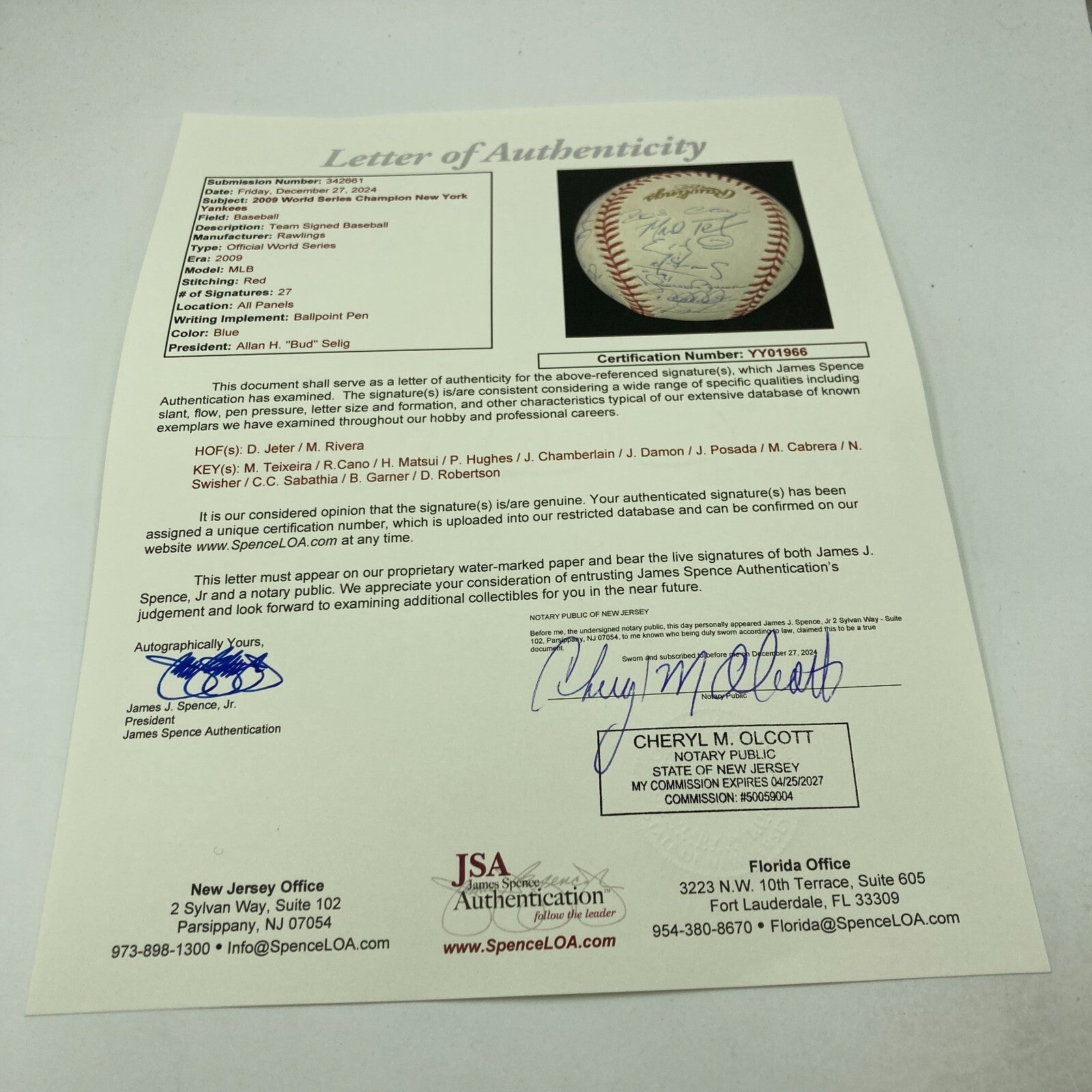 Comes with full letter COA from JSA.