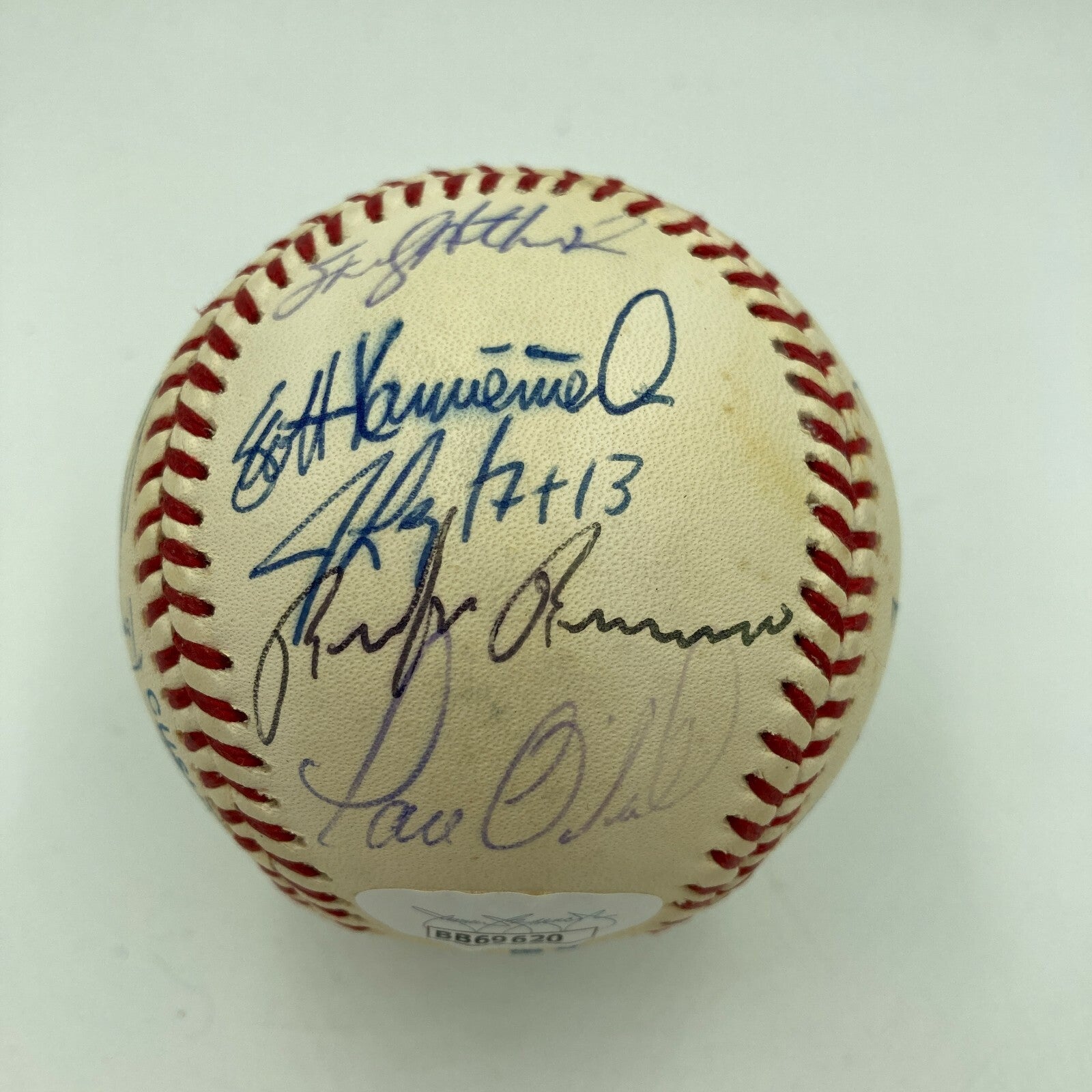 1995 New York Yankees Team Signed American League Baseball. 23 signatures with Derek Jeter (Rookie signature), Mariano Rivera (Rookie), Andy Pettitte (Rookie), Jorge Posada (Rookie), Don Mattingly, Paul O'neill, Buck Showalter, David Cone and the rest of the team. Very rare ball with the whole "Core Four" during their rookie season.