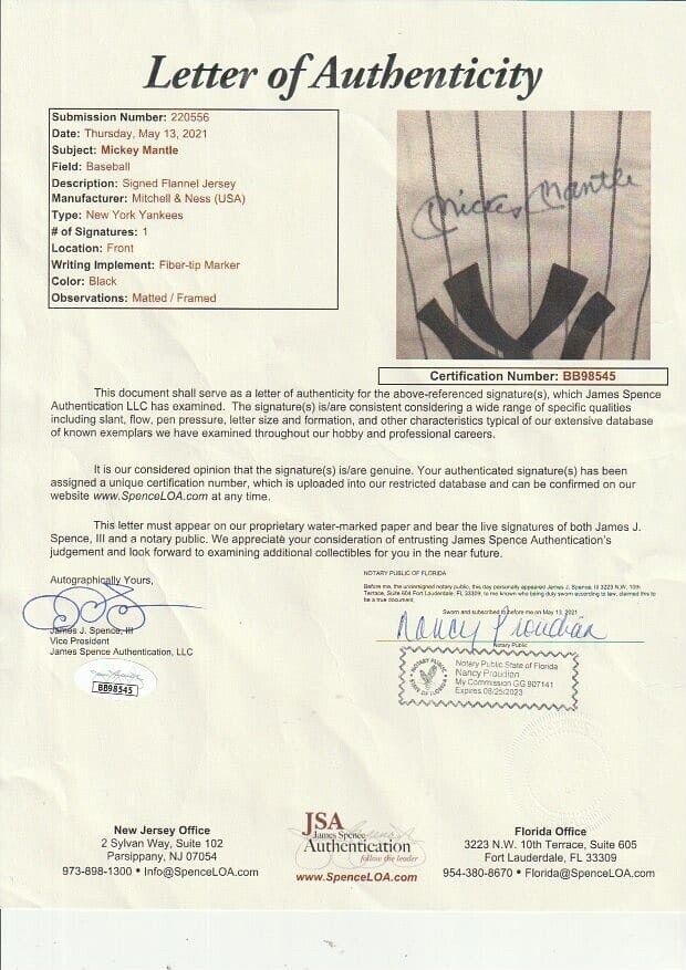 Mickey Mantle Signed 1951 New York Yankees Rookie Game Model Authentic Mitchell & Ness Jersey With JSA COA