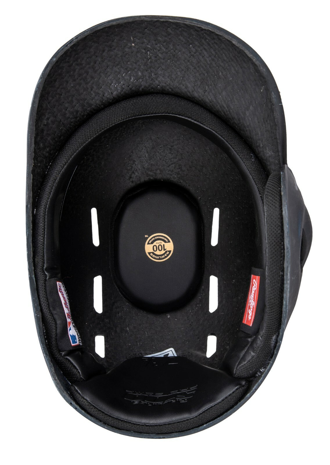 This charcoal colored New York Yankees batting helmet has been photo matched by Resolution Photomatching to Miguel Andujar’s MLB Debut where he collected his first career hit, first career RBI and first career double - breaking the Yankees record for most RBI in a players MLB debut. This historic New York Yankees record setting helmet possesses Andujar’s current number 67, while he wore number 41 in his MLB Debut and then switched to 67 during the 2017 season. The helmet has been authenticated by Steiner Sports and comes with a game used hologram affixed to the helmets reverse. The helmet has an MLB Authenticated hologram (JC009917) that confirms the helmet was team issued and collected form the Yankees with their club authentication on November 2, 2017 following the conclusion of the season which makes it likely this helmet was worn for the duration of the majority of Miguel Andujar’s brief 2017 call up campaign.