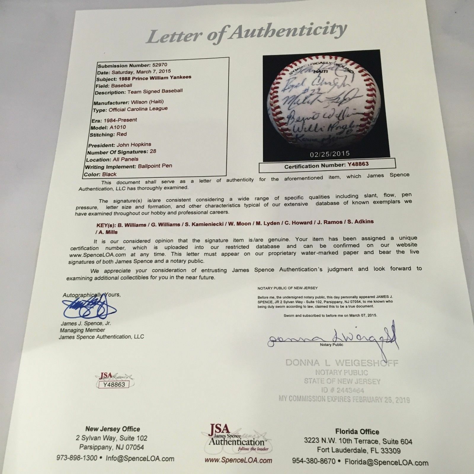 Rare 1988 Bernie Williams Pre Rookie New York Yankees Team Signed Baseball JSA
