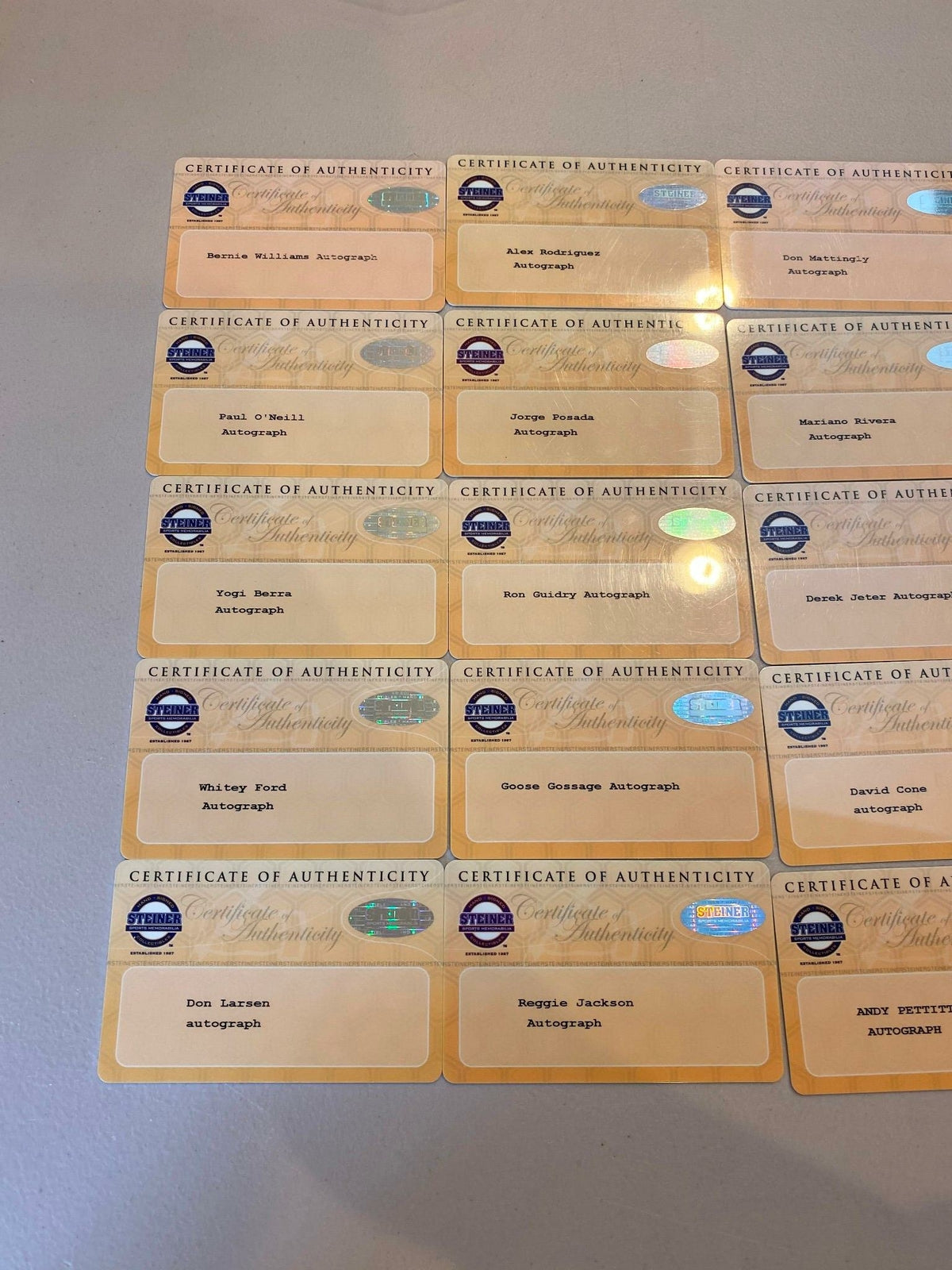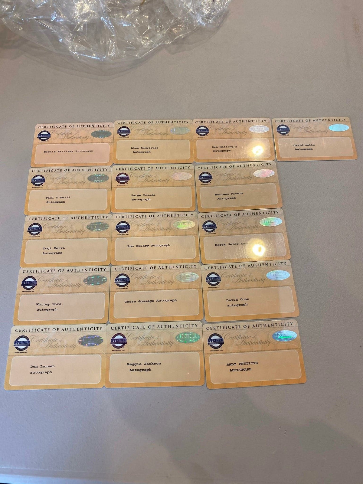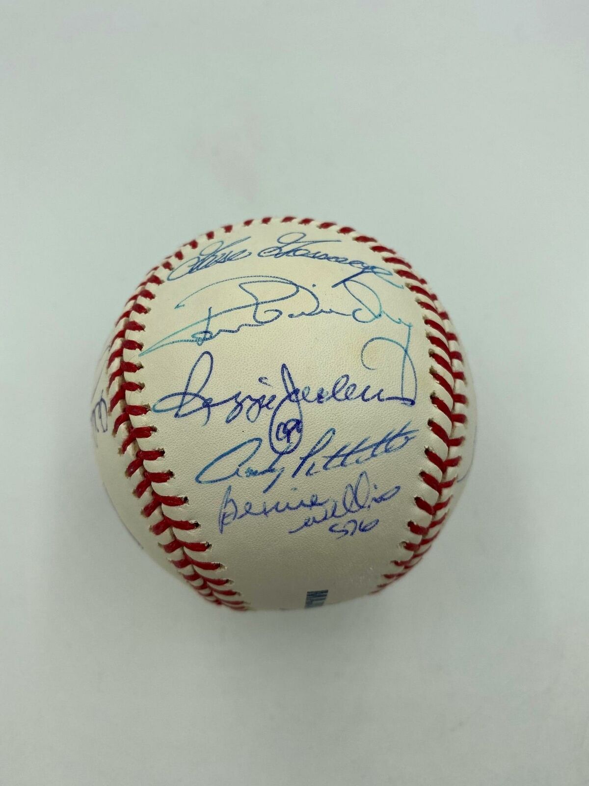 Extraordinary New York Yankees 1940's-2000's Legends multi signed Official Major League Baseball. Signatures include: Derek Jeter, Mariano Rivera, Yogi Berra, Whitey Ford, Don Mattingly, Goose Gossage, Ron Guidry, Reggie Jackson, Andy Pettitte, Jorge Posada, Bernie Williams, Don Larsen, David Cone, David Wells, Alex Rodriguez. Comes with multiple Steiner COA's.