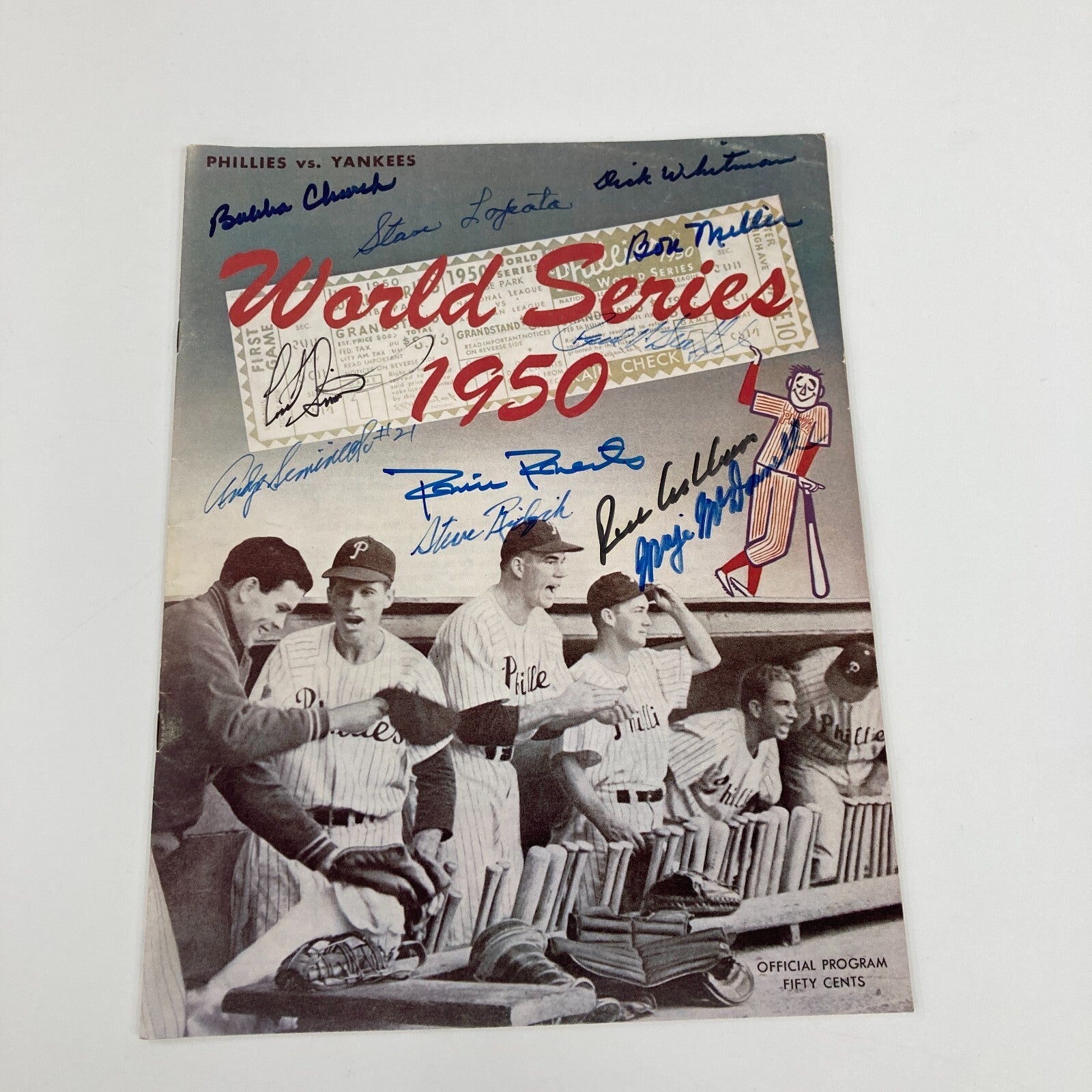 Click or scroll to zoom Tap or pinch to zoom Click or scroll to zoom Tap or pinch to zoom Click or scroll to zoom Tap or pinch to zoom Click or scroll to zoom Tap or pinch to zoom Click or scroll to zoom Tap or pinch to zoom Click or scroll to zoom Tap or pinch to zoom Click or scroll to zoom Tap or pinch to zoom Click or scroll to zoom Tap or pinch to zoom Click or scroll to zoom Tap or pinch to zoom 1950 Philadelphia Phillies "Whiz Kids" Team Signed World Series Program JSA COA $999.00 1 2 3 4 5 6 7 8 9 10+ Quantity Quantity Add to cart This item is a recurring or deferred purchase. By continuing, I agree to the cancellation policy and authorize you to charge my payment method at the prices, frequency and dates listed on this page until my order is fulfilled or I cancel, if permitted. 1950 Philadelphia Phillies "Whiz Kids" Team Signed World Series Reprint Program. 11 authentic signatures with full letter JSA COA. Bin #18