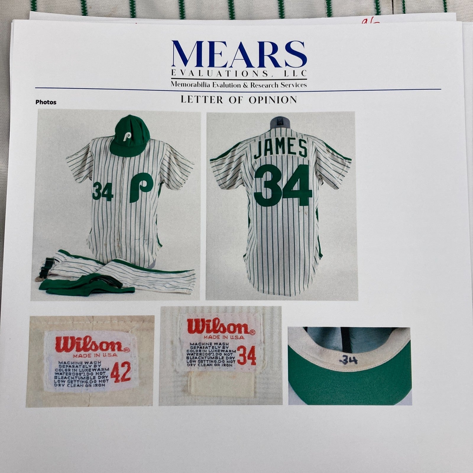 Chris James 1986 St. Patricks Day Game Used Philadelphia Phillies Uniform MEARS COA. Jersey, pants hat and socks.