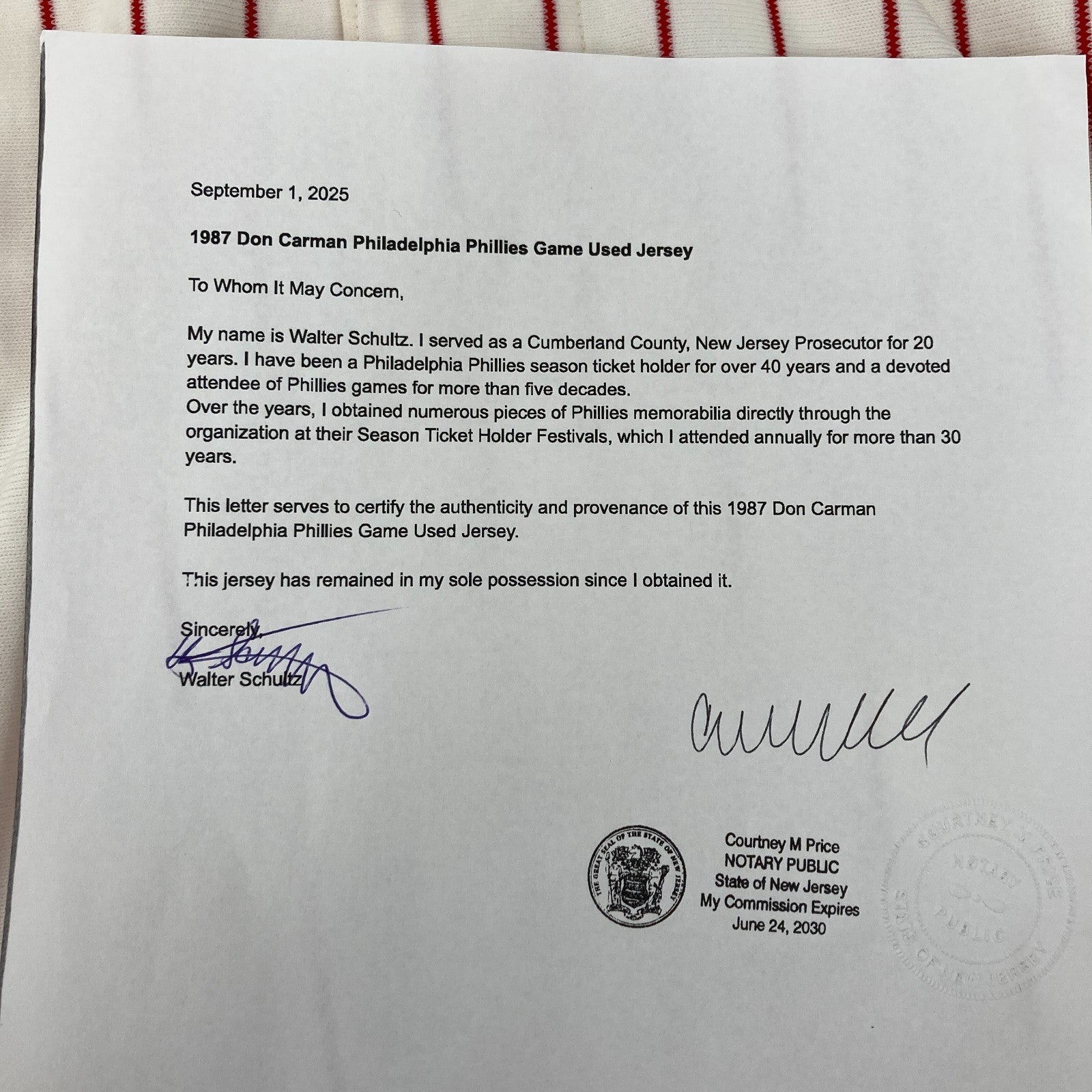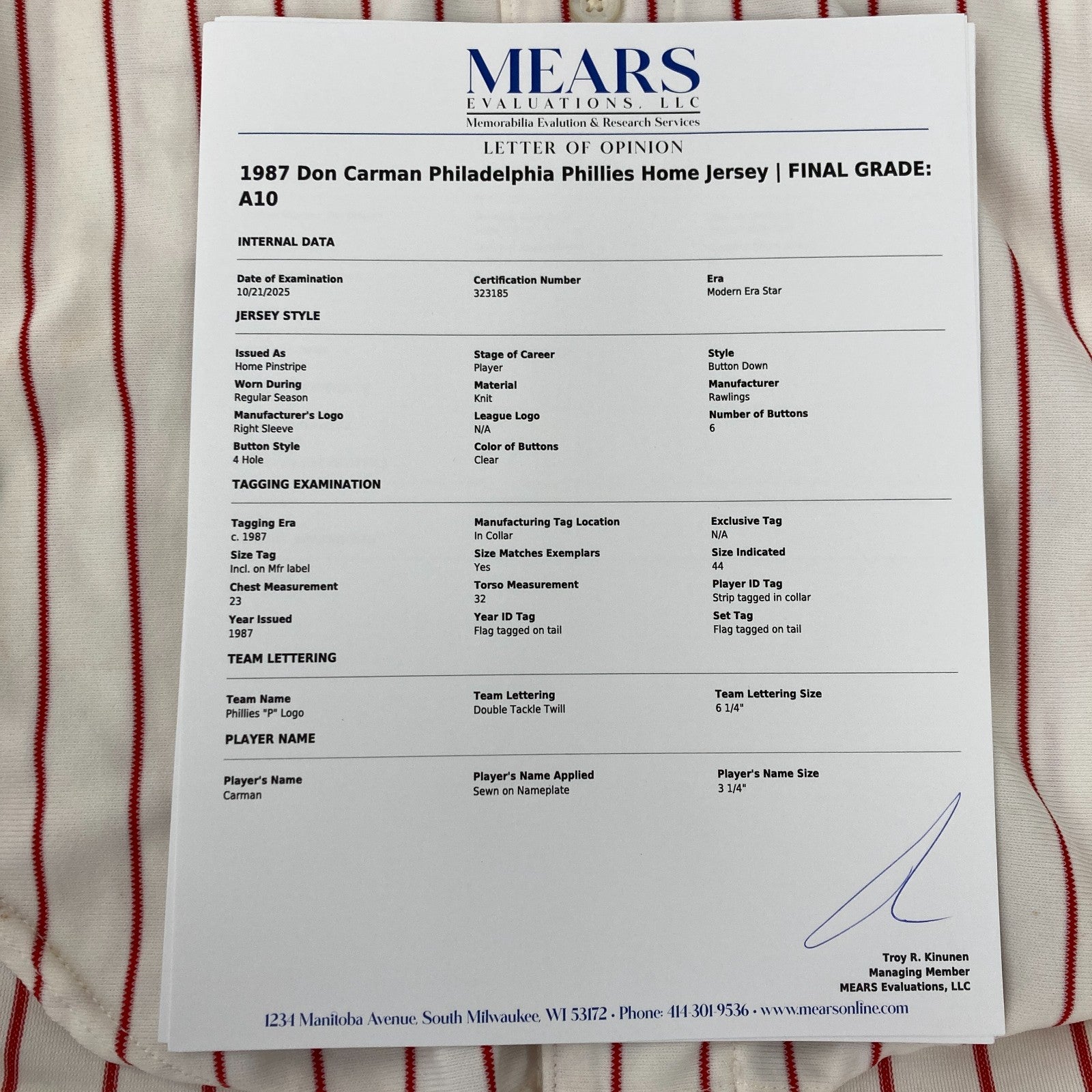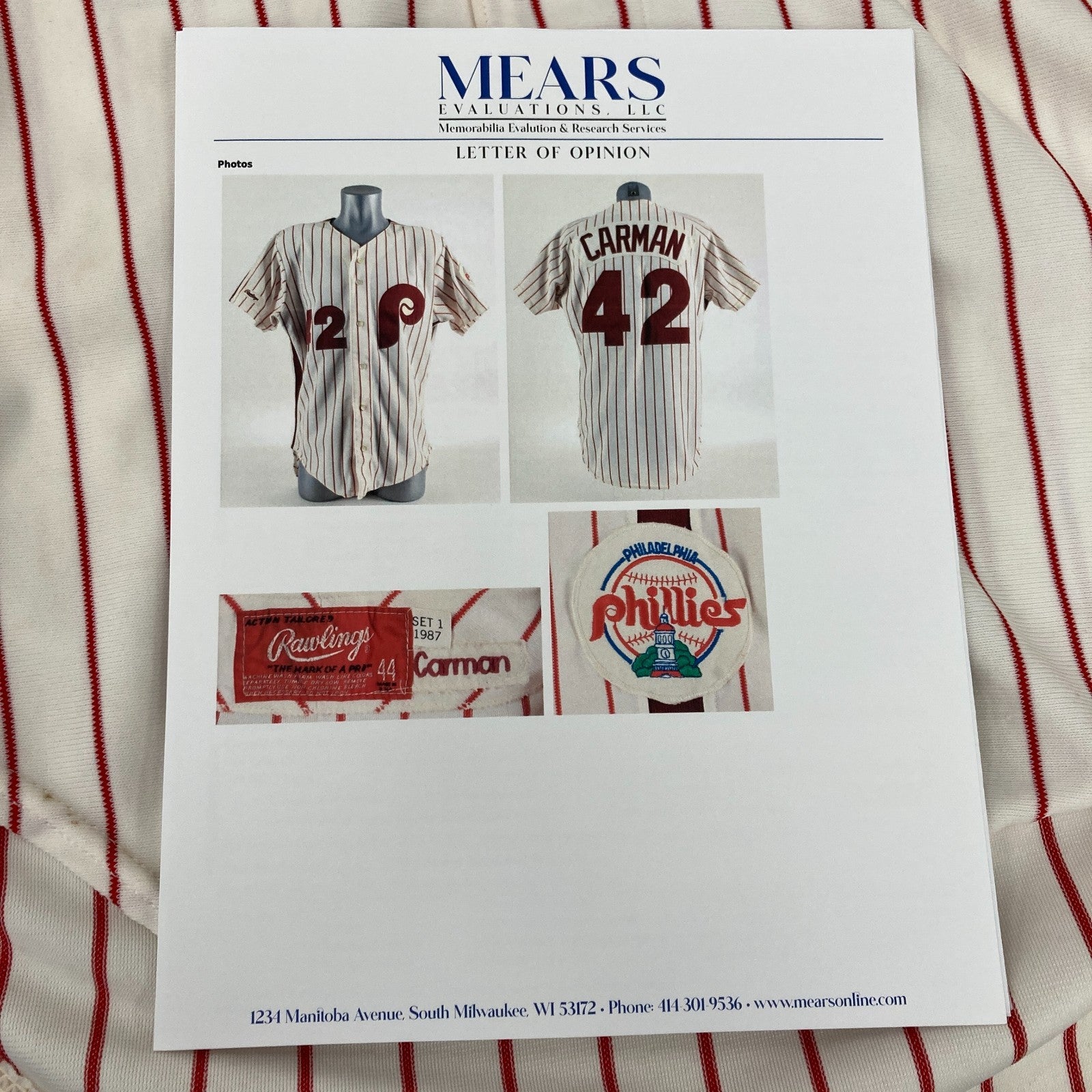 Click or scroll to zoom Tap or pinch to zoom Click or scroll to zoom Tap or pinch to zoom Click or scroll to zoom Tap or pinch to zoom Click or scroll to zoom Tap or pinch to zoom Click or scroll to zoom Tap or pinch to zoom Click or scroll to zoom Tap or pinch to zoom Click or scroll to zoom Tap or pinch to zoom Click or scroll to zoom Tap or pinch to zoom Click or scroll to zoom Tap or pinch to zoom Click or scroll to zoom Tap or pinch to zoom Click or scroll to zoom Tap or pinch to zoom Click or scroll to zoom Tap or pinch to zoom Don Carman 1987 Game Used Philadelphia Phillies Jersey MEARS A10 The Finest $3,495.00 1 2 3 4 5 6 7 8 9 10+ Quantity Quantity Add to cart This item is a recurring or deferred purchase. By continuing, I agree to the cancellation policy and authorize you to charge my payment method at the prices, frequency and dates listed on this page until my order is fulfilled or I cancel, if permitted. The Finest Don Carman 1987 Game Used Philadelphia Phillies Jersey MEARS A10 Comes with full letter COA from MEARS and signed and notarized Letter Of Provenance from the original Owner who got it directly from the Phillies. T#3