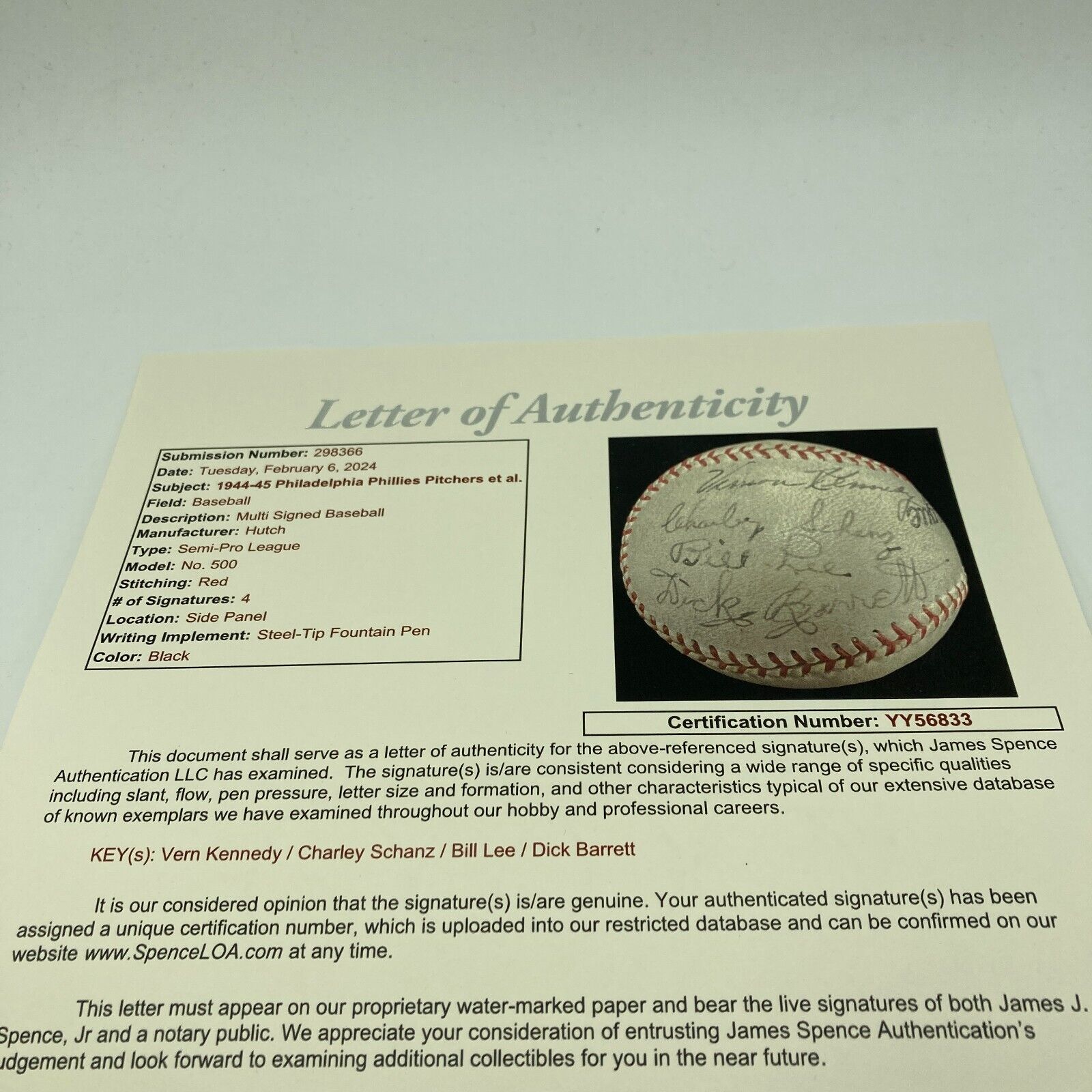 Click or scroll to zoom Tap or pinch to zoom Click or scroll to zoom Tap or pinch to zoom Click or scroll to zoom Tap or pinch to zoom Click or scroll to zoom Tap or pinch to zoom Click or scroll to zoom Tap or pinch to zoom Click or scroll to zoom Tap or pinch to zoom Click or scroll to zoom Tap or pinch to zoom Vern Kennedy No Hitter Philadelphia Phillies Pitchers Signed Baseball JSA COA $399.00 1 2 3 4 5 6 7 8 9 10+ Quantity Quantity Add to cart This item is a recurring or deferred purchase. By continuing, I agree to the cancellation policy and authorize you to charge my payment method at the prices, frequency and dates listed on this page until my order is fulfilled or I cancel, if permitted. Vern Kennedy No Hitter 1944-45 Philadelphia Phillies Pitchers Multi Signed Baseball.Comes with full letter COA from JSA. D#34