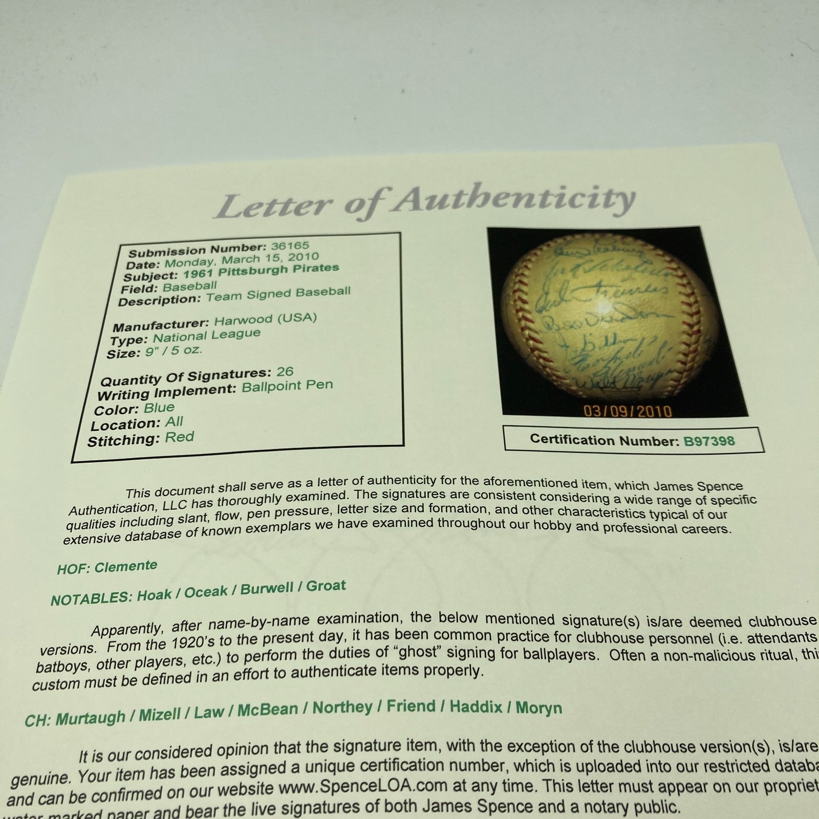 Roberto Clemente 1961 Pittsburgh Pirates Team Signed Baseball. There are a few clubhouse signatures.