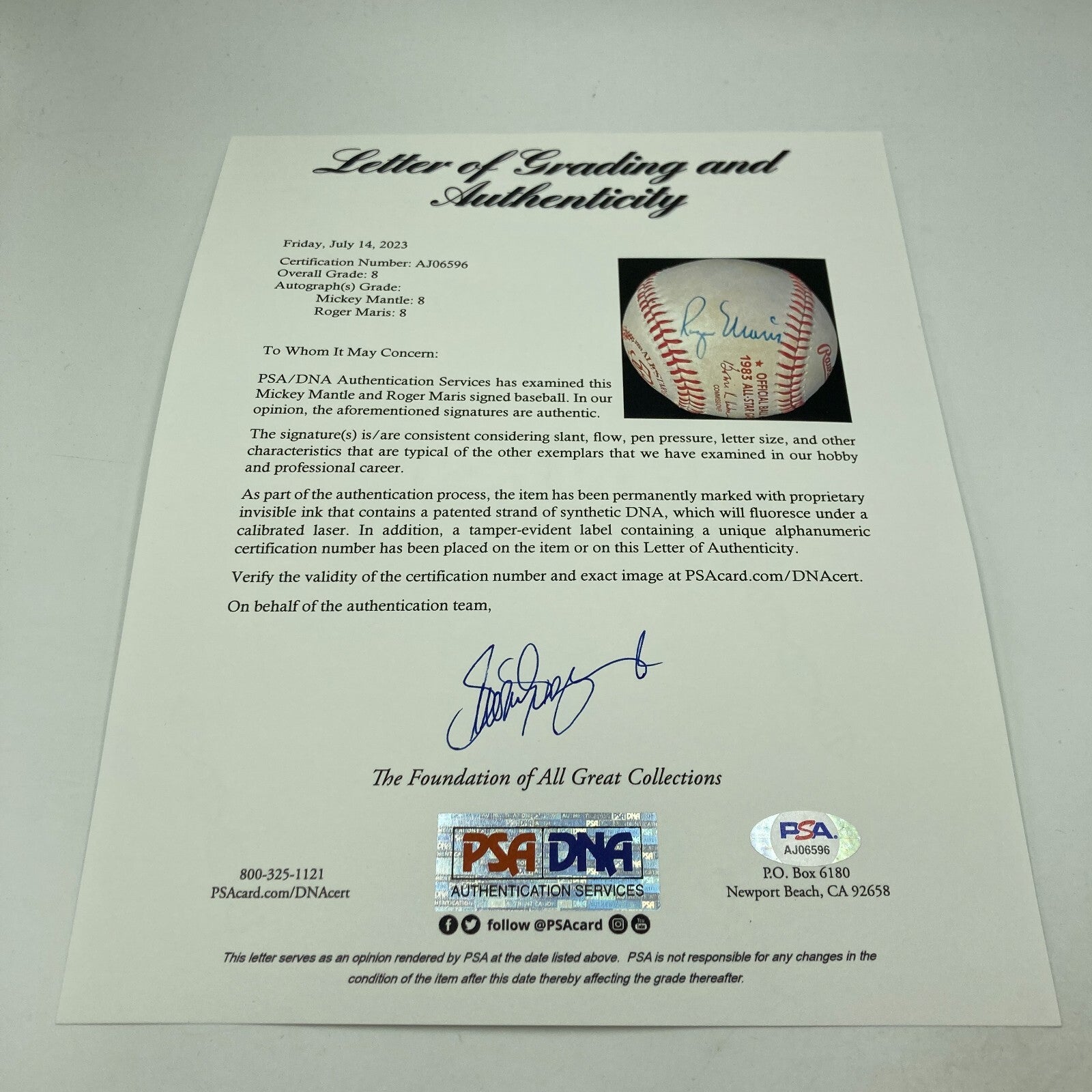 Comes with full letter PSA DNA COA.