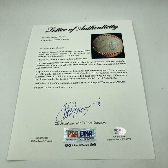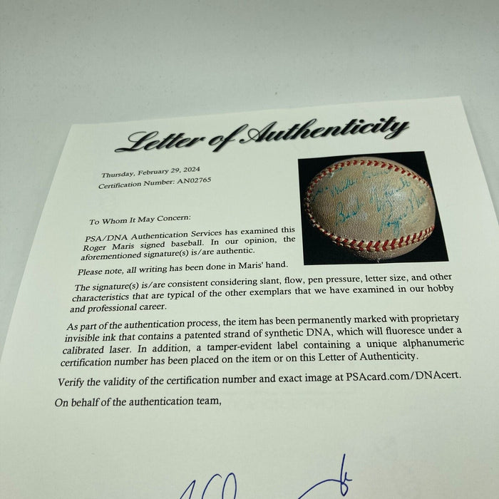 For years I believed that this was the ball that Maris hit off Baltimore Orioles pitcher, Jack Fisher. Long after Roger's death, his family claimed that they were in possession of the ball, so I can't claim with 100% certainty that this was the 60th Home Run baseball, but I believe that if this is not the actual home run ball; that this was used in the game and signed especially for me on the night that Maris tied Babe Ruth's single season Home Run Record.