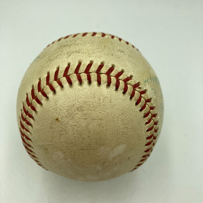 Obviously, it is impossible to know if this is the ball that Fisher served up to Maris for his 60th home run, but just the possibility that it might be adds to its mystique. At the very least, it is a ball used in that historic game and is the only such signed example we have ever seen, making it one of the most significant Maris signed baseballs in the hobby.