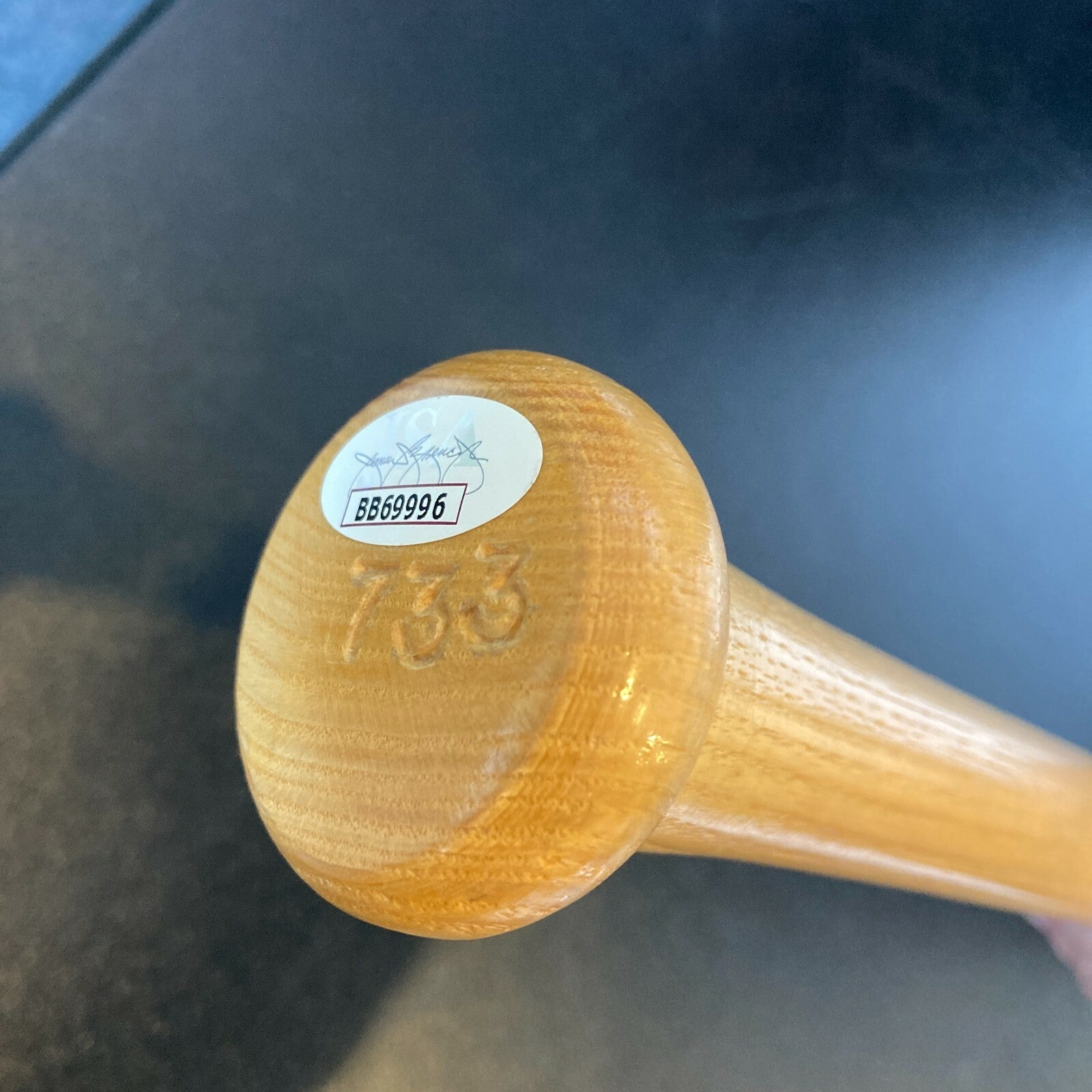 Ebbets Field commemorative bat, issued by the Cooperstown Bat Company, signed in blue Sharpie by the following forty-five former members of the Brooklyn Dodgers: Don Drysdale, Roy Campanella, Duke Snider, Pee Wee Reese, Sandy Koufax, Tom Lasorda, Leo Durocher, Dick Williams, Billy Herman, Al Gionfriddo, Billy Loes, Charlie Neal, George Shuba, Rocky Nelson, Dick Whitman, Johnny Roseboro, Gene Hermanski, Roger Craig, Johnny Podres, Tommy Holmes, Ed Miksis, Don Zimmer (twice), Ken Lehman, Spider Jorgensen, Dolph Camilli, Andy Pafko, Joe Pignatano, Joe Black, Don Newcombe, Ransom Jackson, Elmer Valo, Russ Meyer, Carl Erskine, Rube Walker, Ralph Branca, Cal Abrams, Clem Labine, Gino Cimoli, Buddy Hassett, Mickey Owen, Jim Gentile, Rex Barney, Gene Mauch, and two others. The bat (34 inches) remains in Mint condition. Full letter JSA COA.