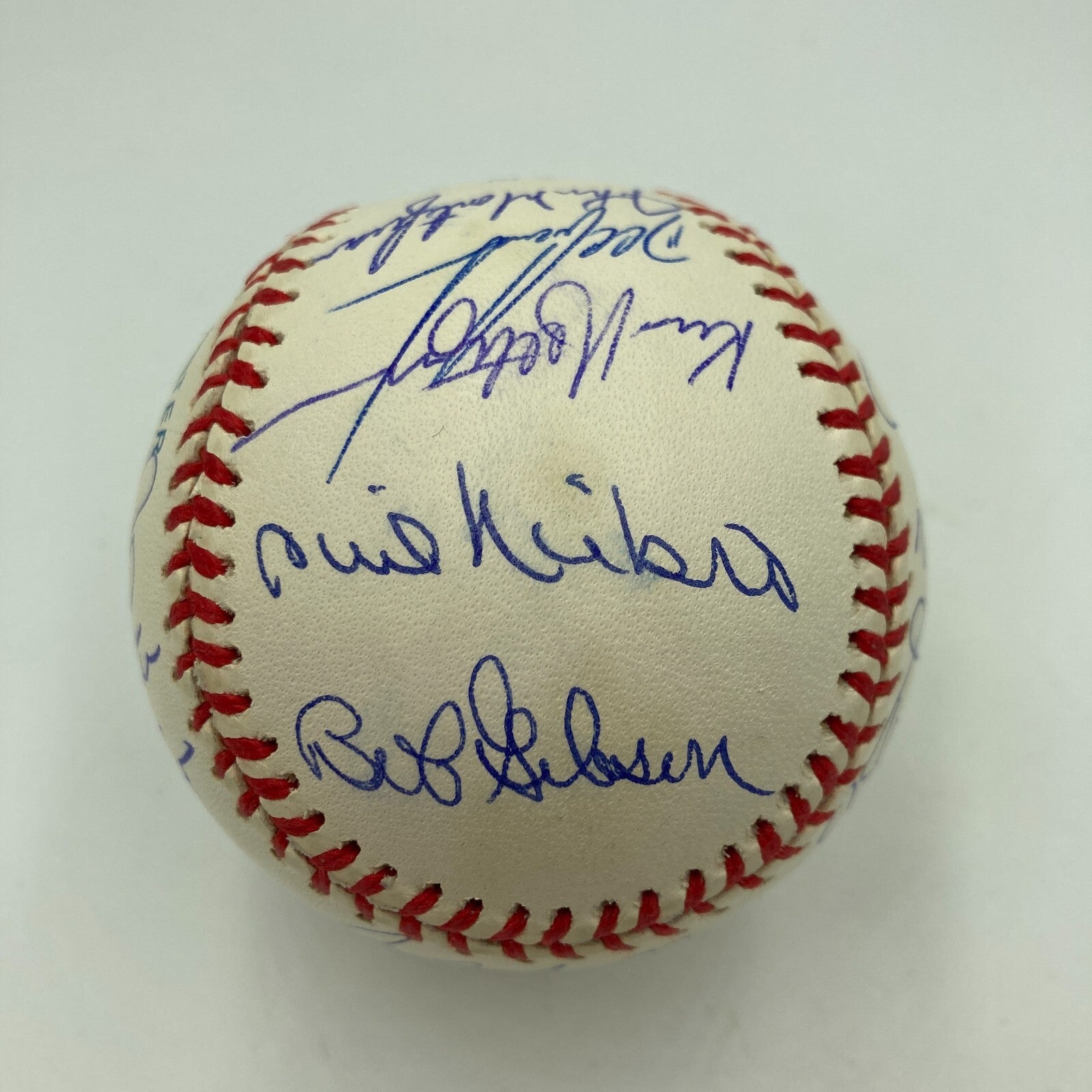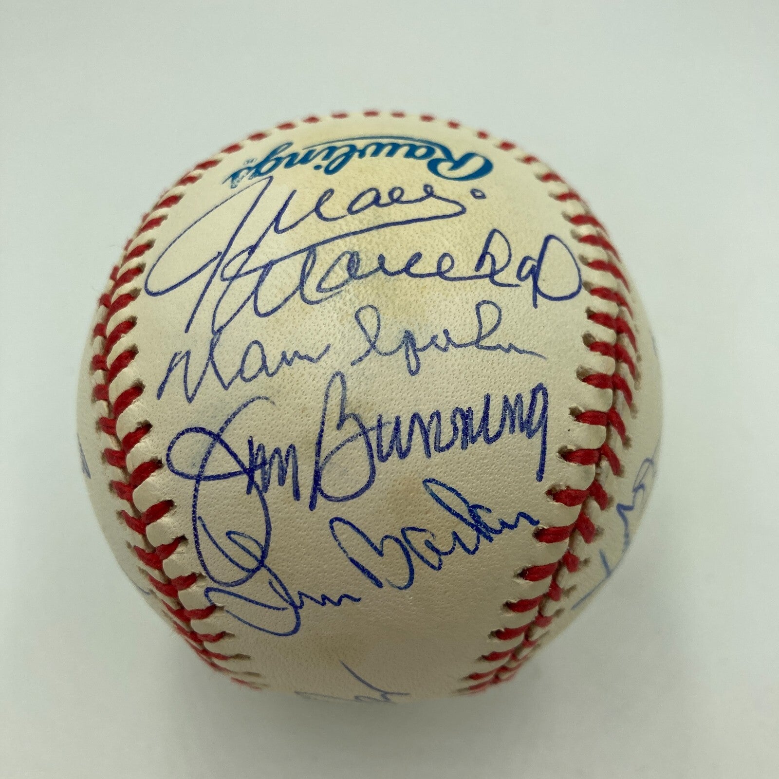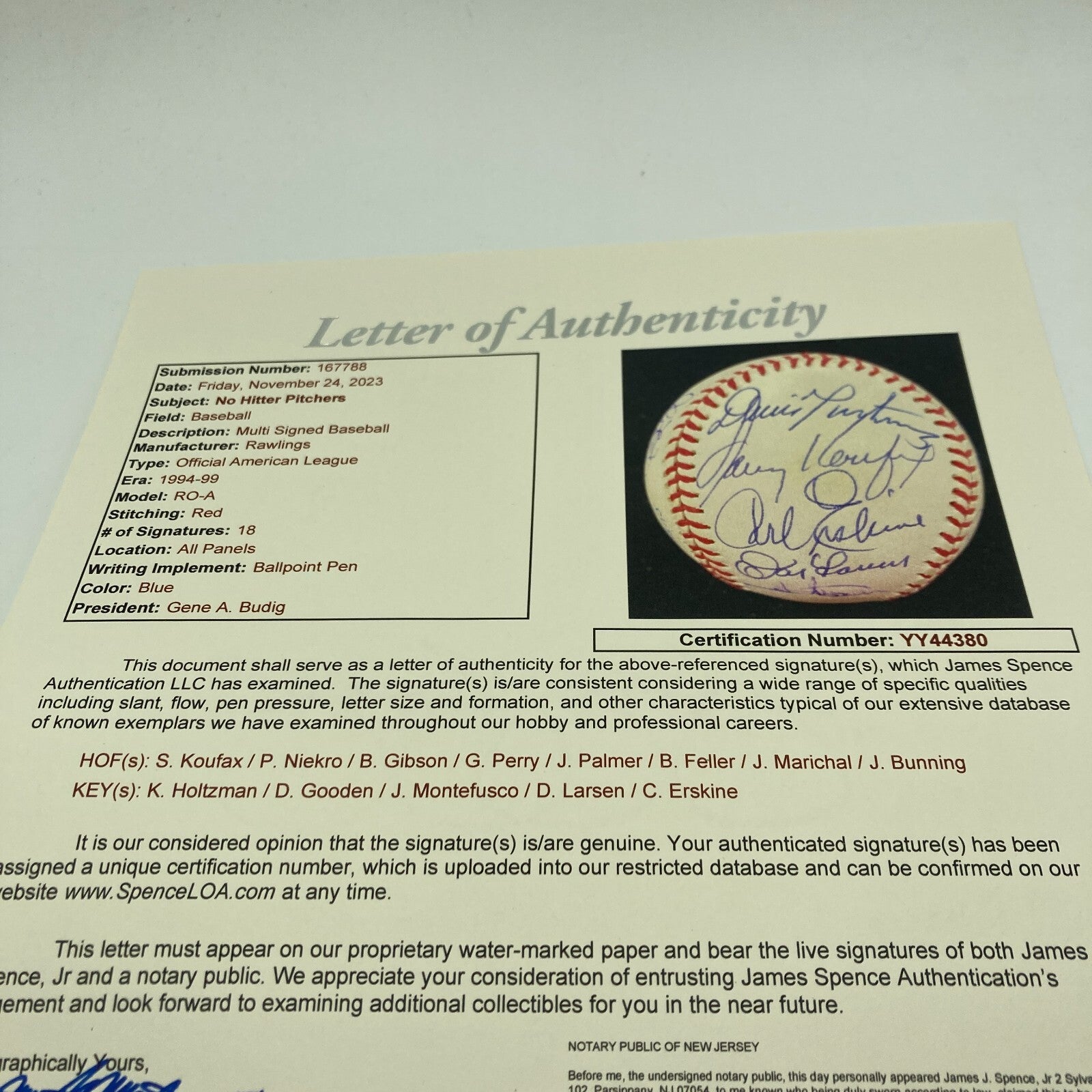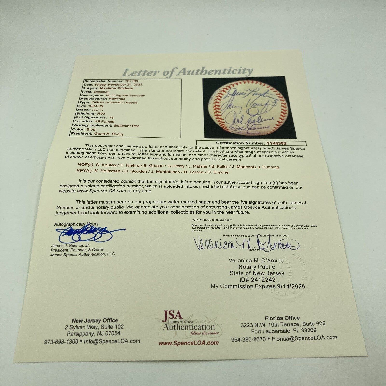 No-Hitter Pitchers Multi-Signed Baseball. Offered is a Rawlings baseball signed by 22 pitchers who tossed a no-hitter in their MLB career. Signees include Sandy Koufax, Jim Bunning, Bob Feller, Gaylord Perry, Bob Gibson, Don Larsen, Jim Palmer, Juan Marichal, Ken Holtzman and many others.