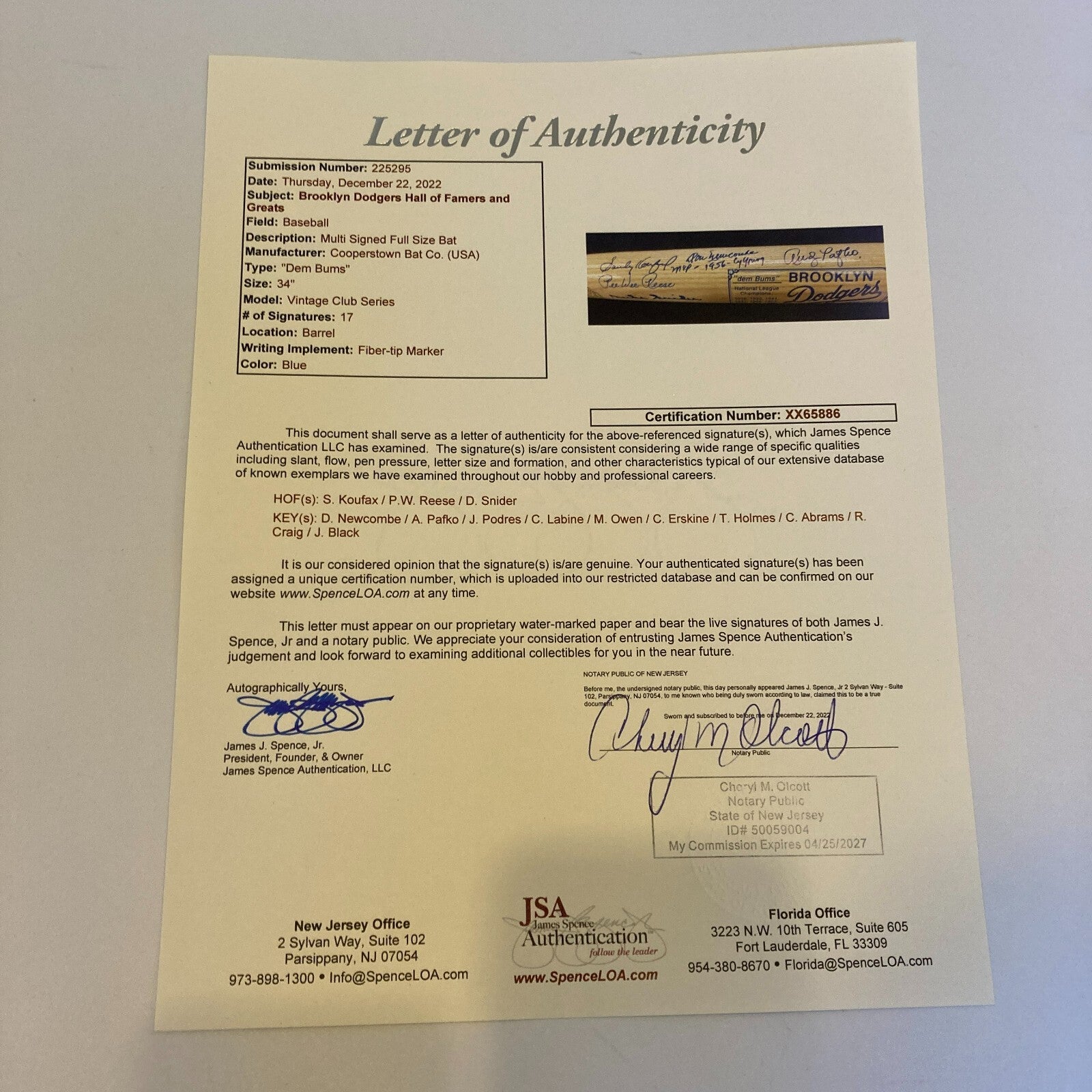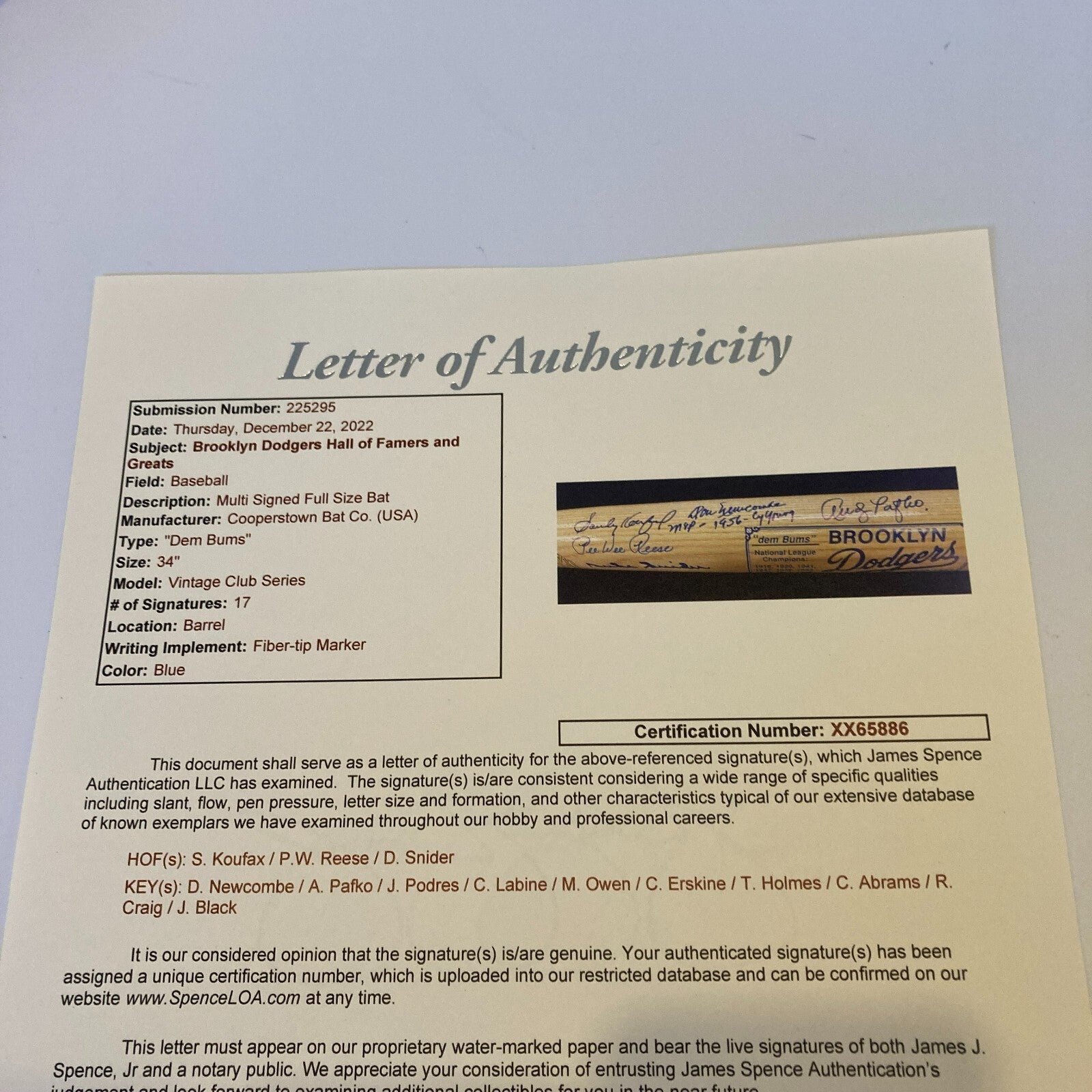 Signer(s): 17 with Snider, Reese, Pafko, Owen, Podres, Koufax, Black, Jorgensen, Hassett, Labine, Camilli, Abrams, Holmes, Erskine, Newcombe, Craig.