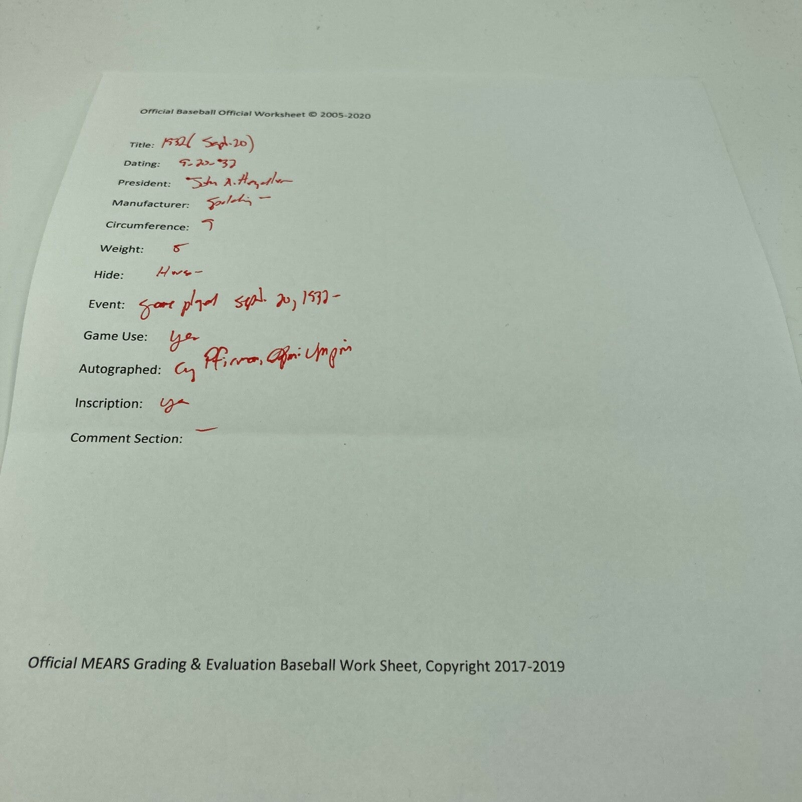 Comes with full letter COA from MEARS.