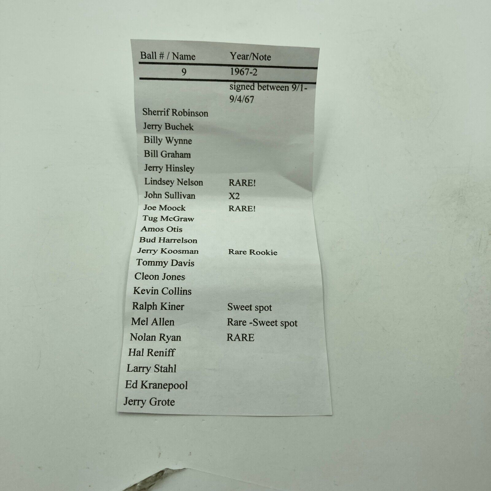 Click or scroll to zoom Tap or pinch to zoom Click or scroll to zoom Tap or pinch to zoom Click or scroll to zoom Tap or pinch to zoom Click or scroll to zoom Tap or pinch to zoom Click or scroll to zoom Tap or pinch to zoom Click or scroll to zoom Tap or pinch to zoom Click or scroll to zoom Tap or pinch to zoom Click or scroll to zoom Tap or pinch to zoom Click or scroll to zoom Tap or pinch to zoom Click or scroll to zoom Tap or pinch to zoom 1968 New York Mets Team Signed National League Baseball Nolan Ryan JSA COA $649.00 1 2 3 4 5 6 7 8 9 10+ Quantity Quantity Add to cart This item is a recurring or deferred purchase. By continuing, I agree to the cancellation policy and authorize you to charge my payment method at the prices, frequency and dates listed on this page until my order is fulfilled or I cancel, if permitted. 1968 New York Mets Team Signed Official National League Baseball With Nolan Ryan. Comes with full letter JSA COA. #91258477263 D#63