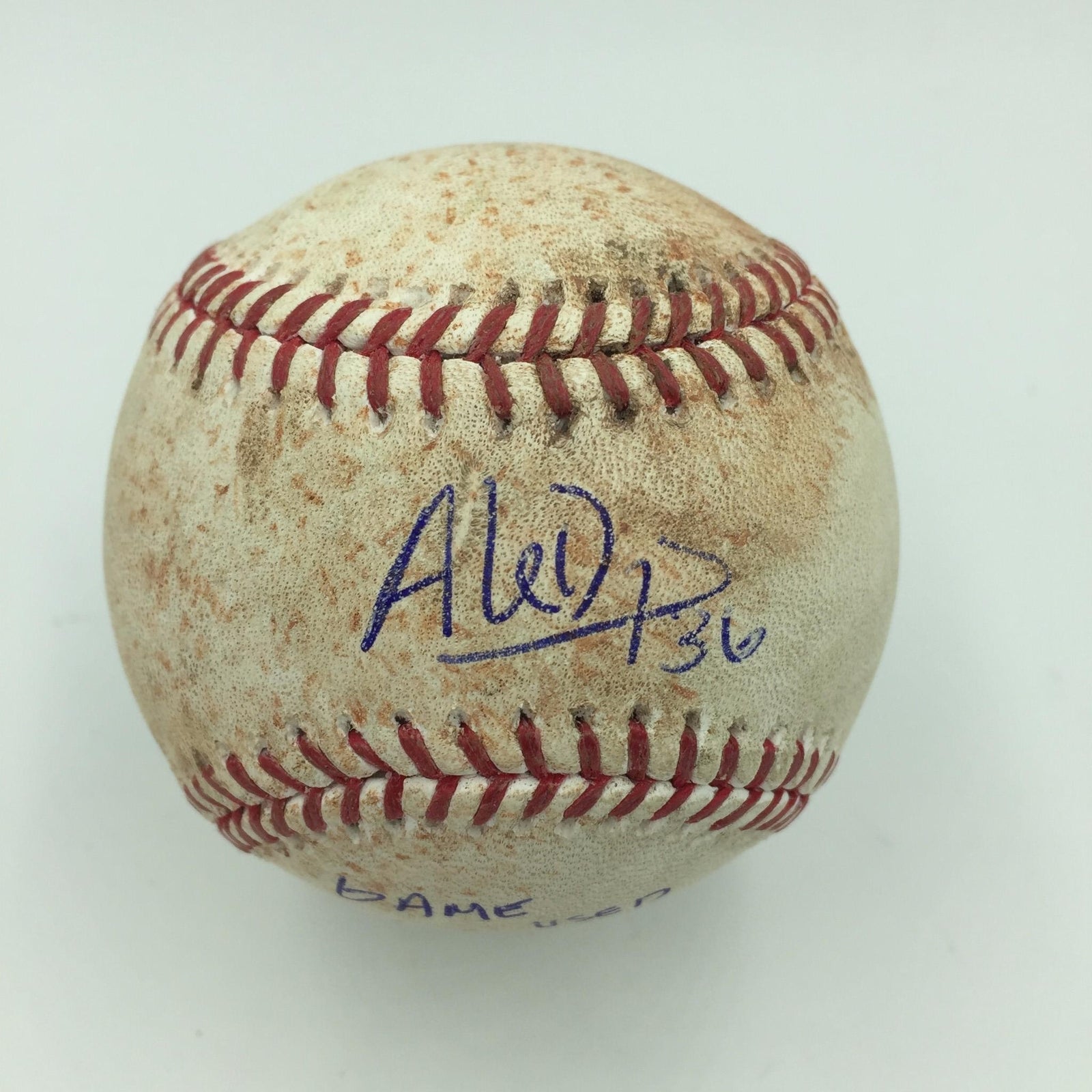 2016 Aledmys Diaz signed MLB authenticated official Major League Baseball. Ball has been authenticated as used on Diaz's Major League debut Game on April 5th 2016. JSA certified Diaz's signature. This is truly a one-of-a-kind piece. MLB hologram is HZ 870869. Does not have JSA card.